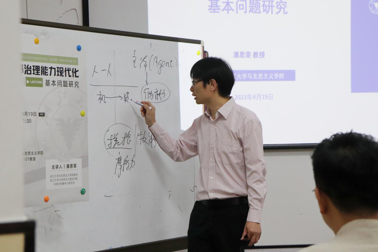 4月19日上午,马克思主义学院干部教育学研究生主题学术论坛第一期在成均苑2幢107教室成功举办。本次论坛由浙江大学马克思主义学院教授、理论创新与研究传播中心潘恩荣老师主讲,德育导师陈晓伟列席,干部教育学专业全体同学参加。