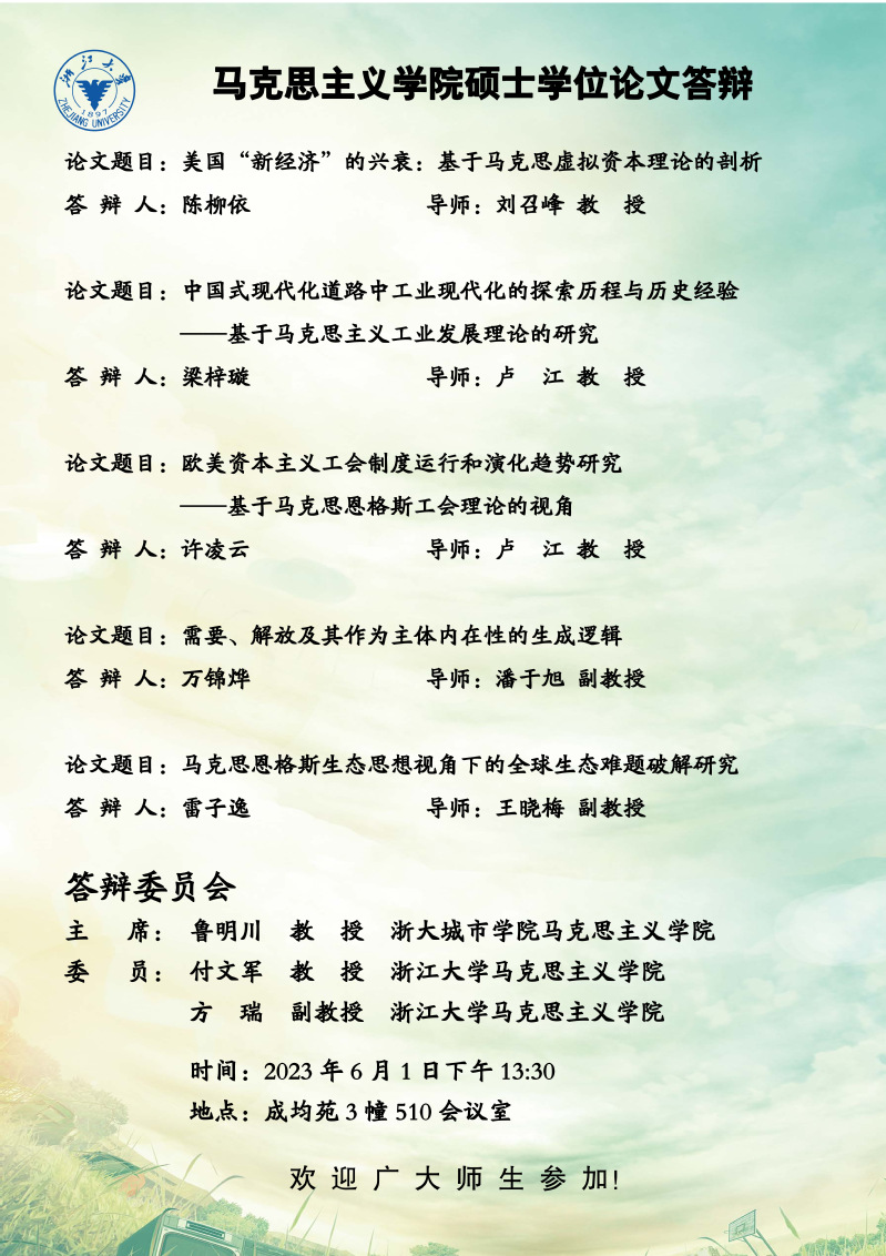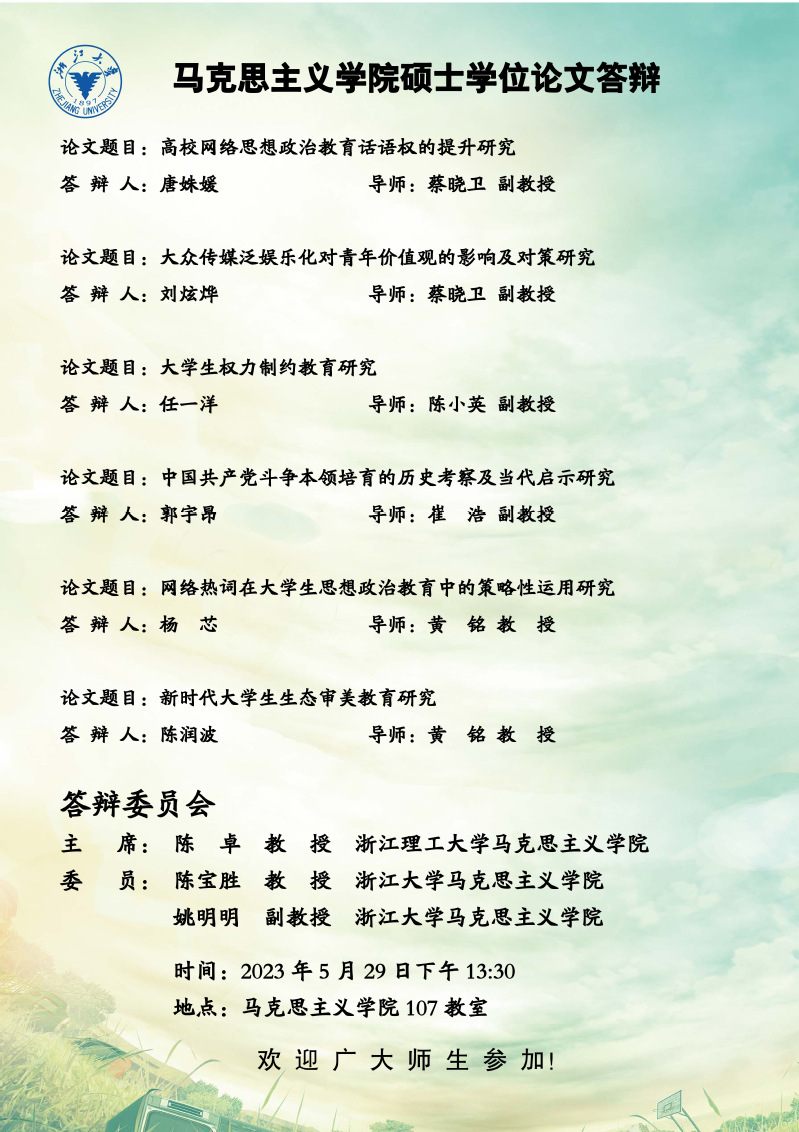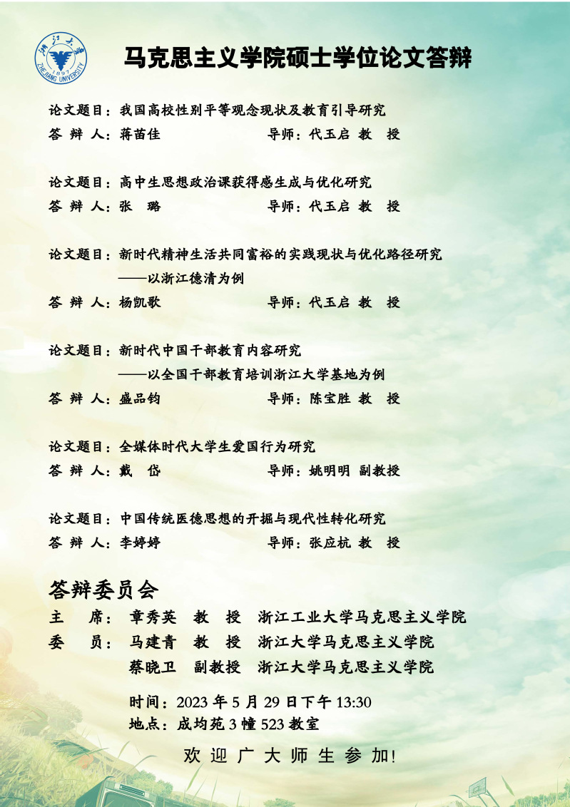 2023年第二季度硕士学位答辩通知(一)