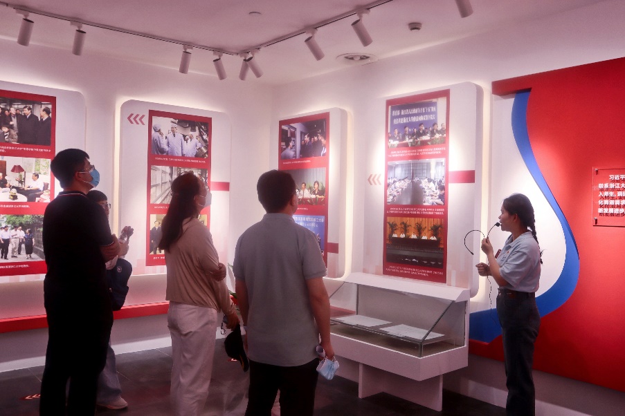 随着讲解员的引导,支部党员继续参观“心怀‘国之大者’ 奋力‘走在前列’——浙江大学学思践悟习近平总书记系列重要指示精神办学成果展”。该展览分多个单元系统梳理了习近平总书记关于建设中国特色世界一流大学的重要论述,展现了浙江大学以习近平总书记重要指示精神为指引,为建成更加卓越的综合型、研究型、创新型大学作出的全方位努力和取得的跨越式发展。随着对二十年间学校取得的丰硕办学成绩的参观学习,支部同志们身为浙大人的自豪感油然而生,更加坚定了努力奋斗的信心。