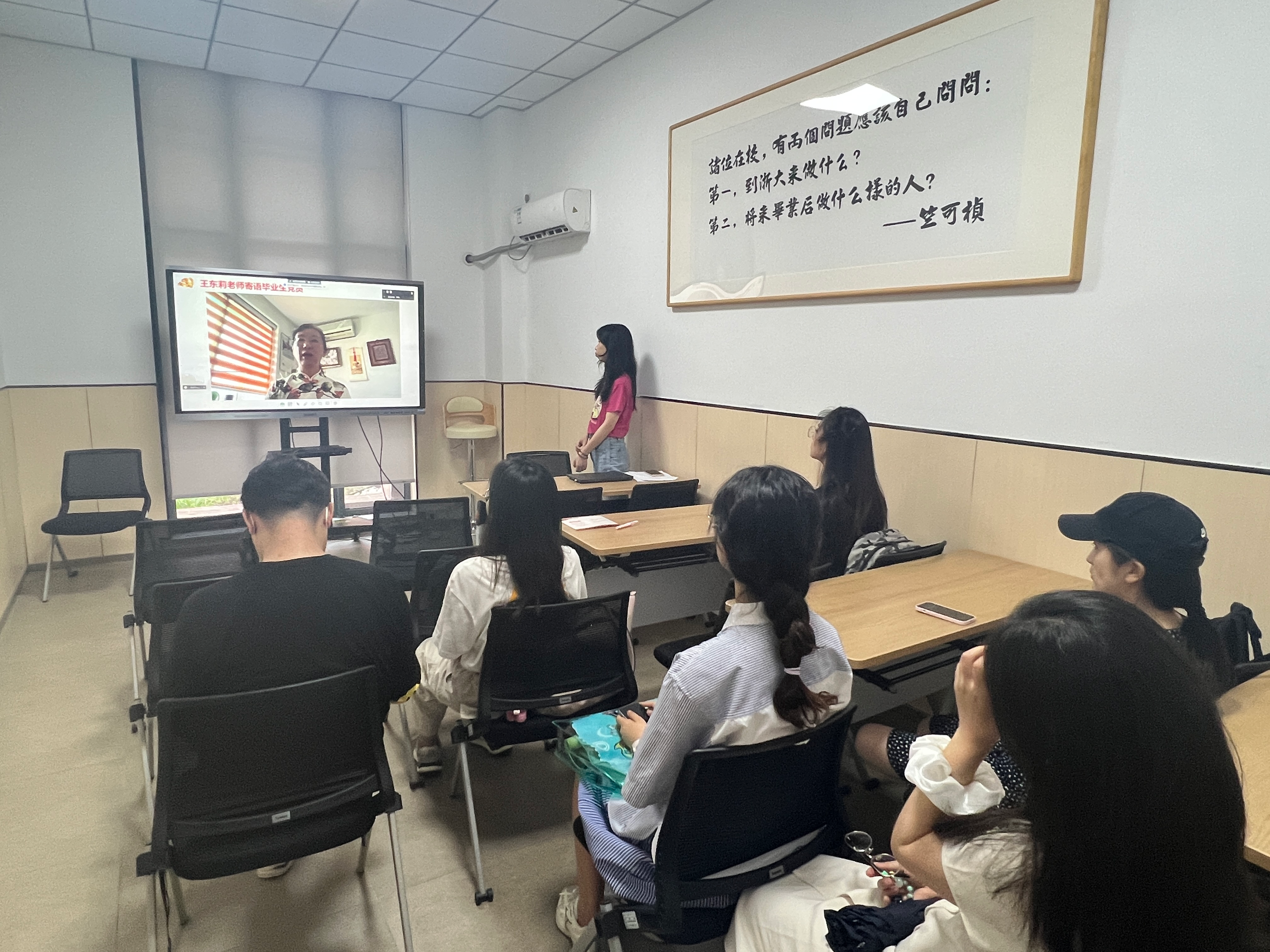 而后,支部结对的校王明华研究生党建工作室导师王东莉老师寄语毕业生党员,为同学们送上祝福和期许。王老师结合自身学习和工作经历,勉励同学们在新的征程上心怀梦想、珍惜当下、心有阳光,以一往无前的奋斗姿态和永不懈怠的精神状态,在新时代新征程中留下奋斗足迹。