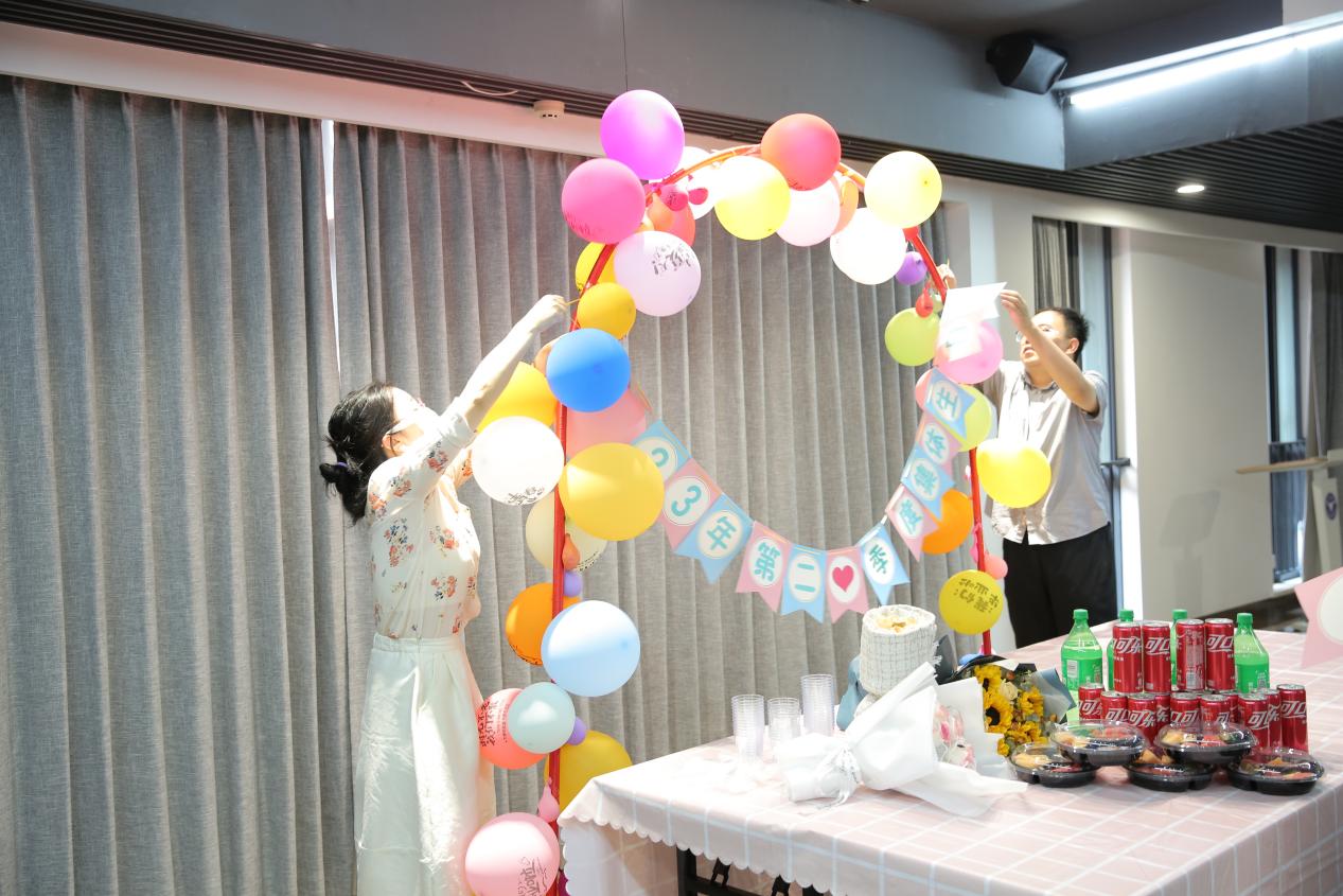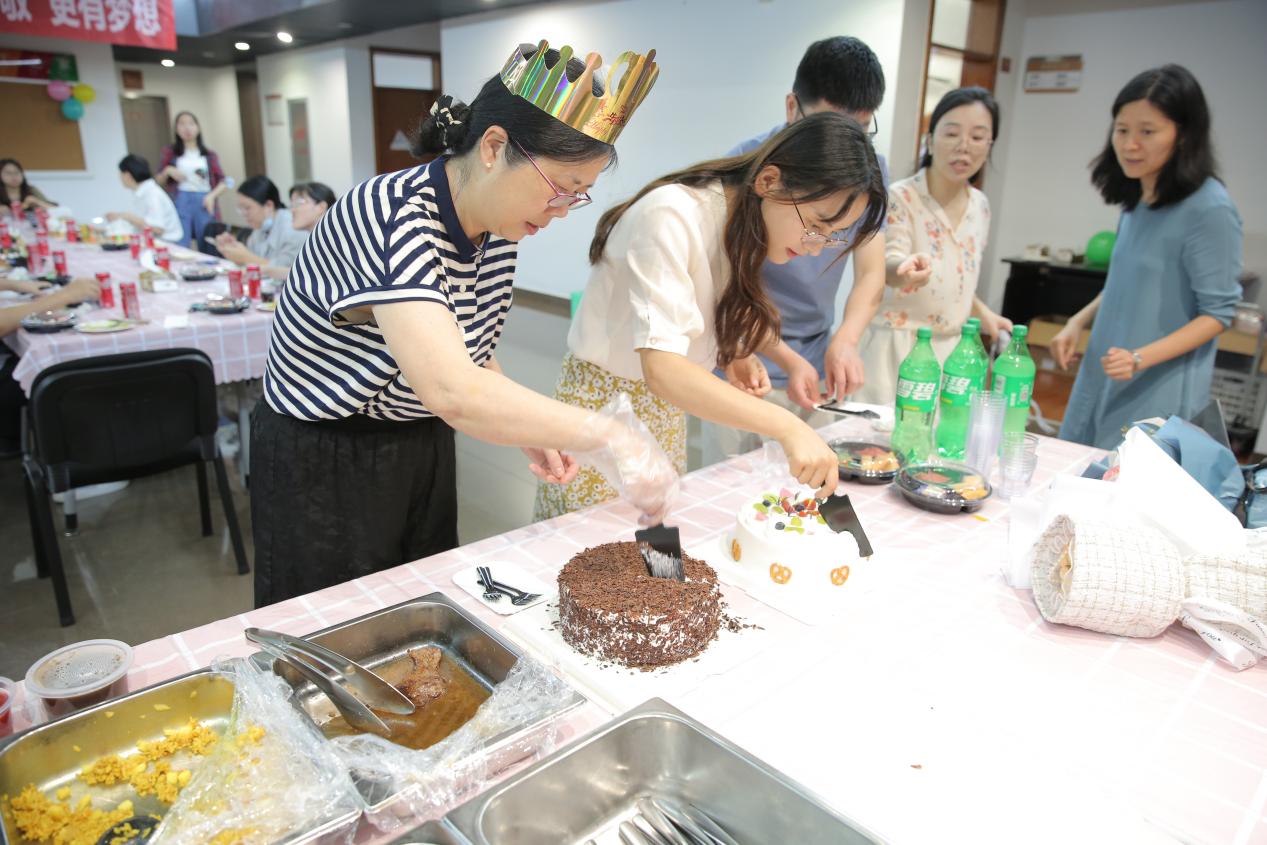 上午十一时许,学院工会委员陆续到达学院五楼大厅,大家分工协作,紧张而有序地布置生日会场,精心为寿星们营造温馨的生日会氛围,为今年第二季度过生日的老师们送上生日大餐。