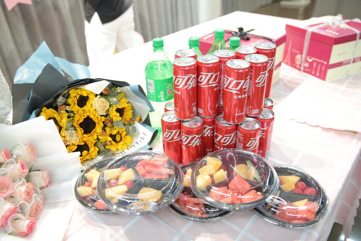 中午十二点正,生日会正式开始。与往届不同,本次生日会以冷餐会形式展开,工会给各位老师准备了水果拼盘、咖喱饭、牛排、甜甜圈和可乐等。大家以自助的形式,享受着美食。