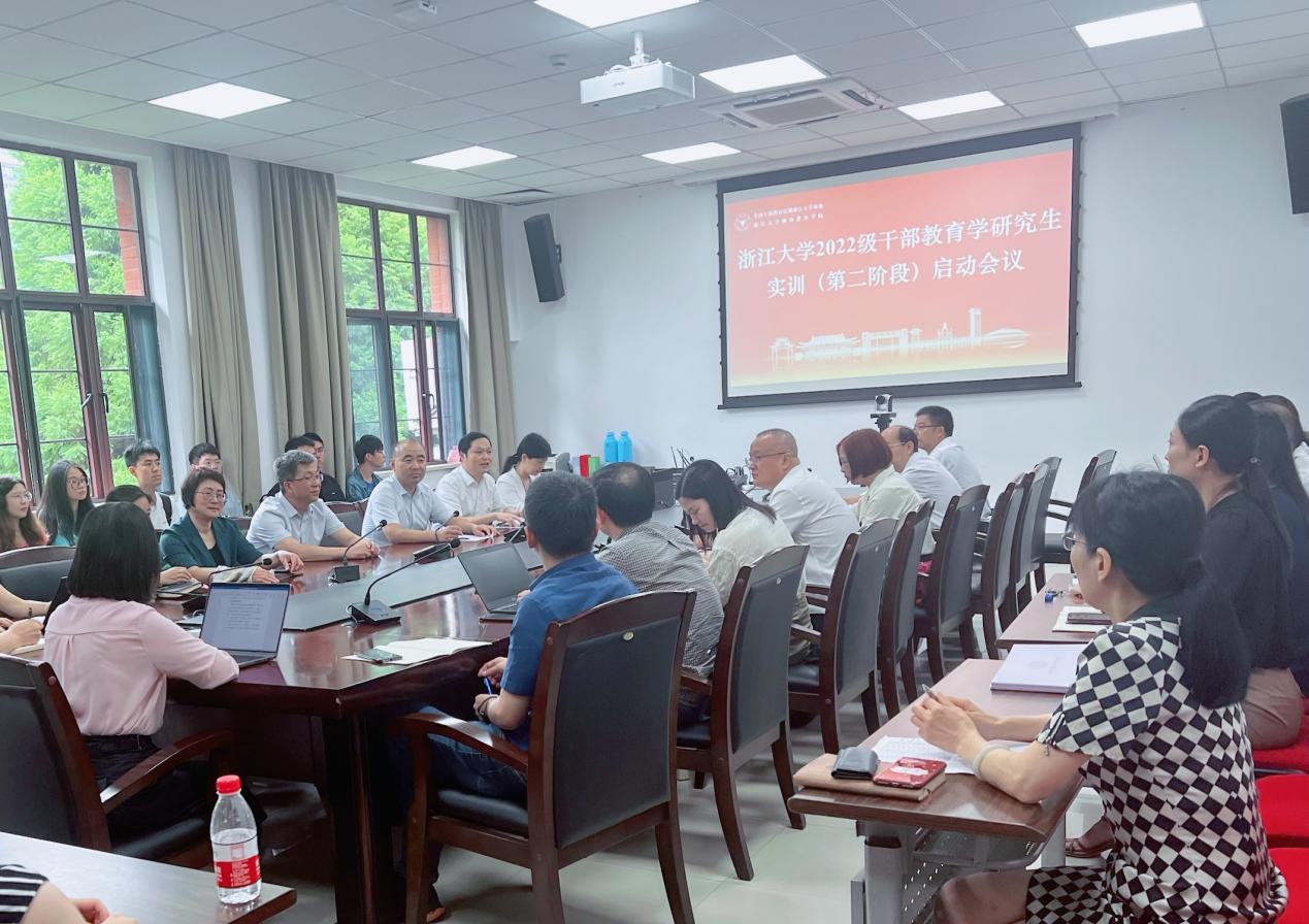 2023年7月17日,马克思主义学院2022级干部教育学硕士研究生实训(第二阶段)启动会议在华家池校区东大楼341会议室召开。全国干部教育培训浙江大学基地副主任、继续教育学院院长刘继荣,马克思主义学院副院长代玉启、干部教育学研究生实训(第二阶段)部分实践导师出席会议。全国干部教育培训浙江大学基地副主任、继续教育学院党委副书记兼副院长钟永萍主持会议。