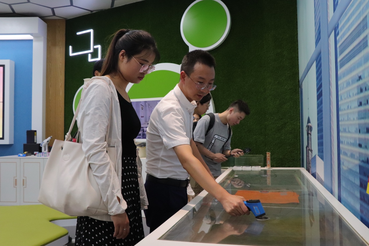 好的政策不仅仅是直观上科技园区的体量不断扩大,更实际体现在众多企业产品竞争力和经济效益的不断攀升。下午,金华队一行奔赴金华市牛墨石墨烯应用科技有限公司,在金东区科技局党组成员王胜、企业技术总裁陈波博士、行政总裁杨跃仁的热情陪同下开展调研活动。在牛墨泛碳材料展厅参观的过程中,行政总裁杨跃仁向调研团队介绍了牛墨公司的主要经营战略规划与公司核心产品。展厅参观结束后,相关人员与团队师生进行了亲切交谈,针对企业的科研投入和研发现状及难题展开了深入探讨。