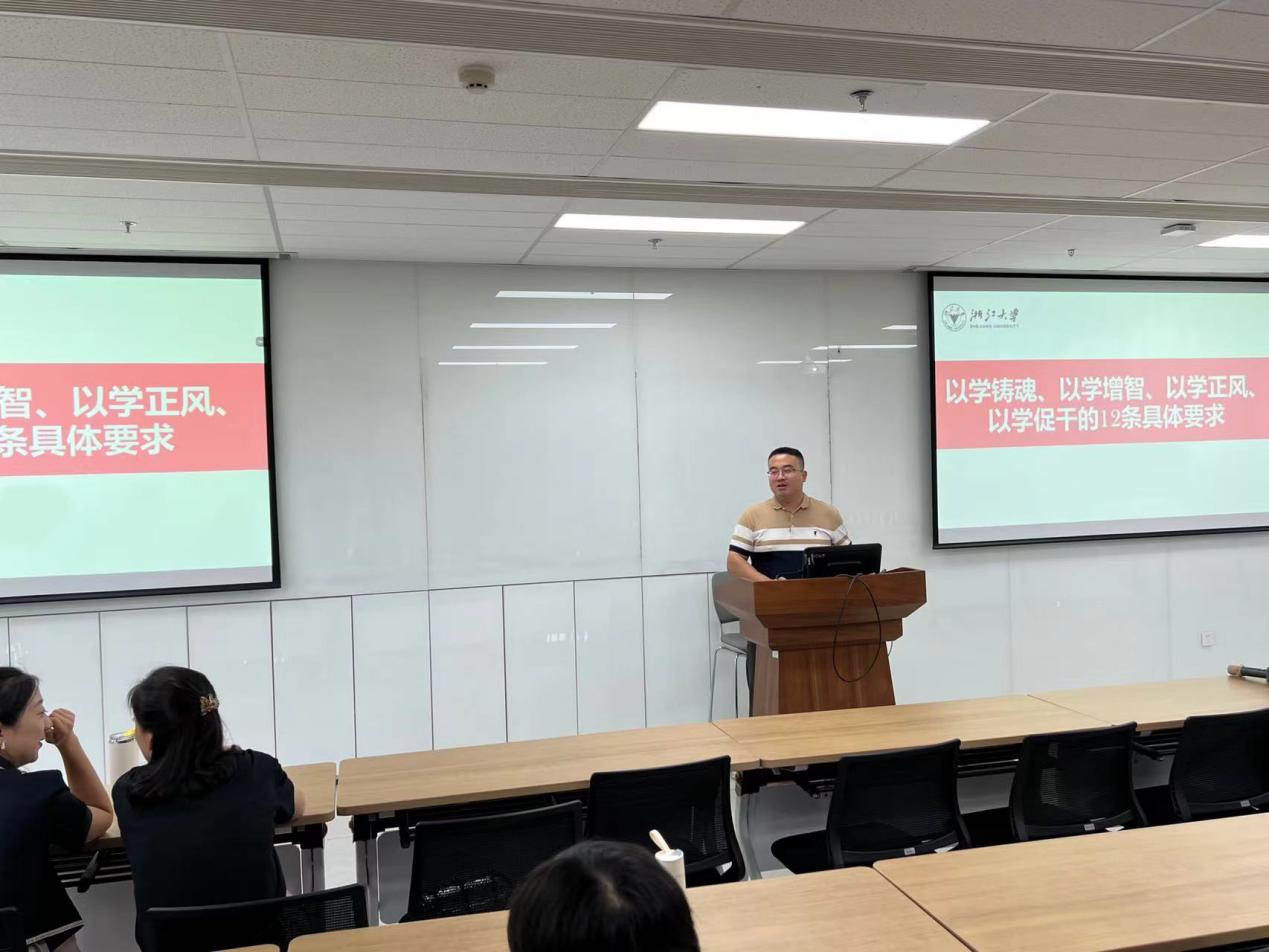 随后,靳思远老师为全体党员作主题报告,题目是《习近平总书记关于以学铸魂、以学增智、以学正风、以学促干的具体要求》。自2023年4月以来,习近平总书记分别在广东、陕西、内蒙古、江苏等地考察讲话时提出关于以学铸魂、以学增智、以学正风、以学促干的12条具体要求。靳思远老师系统梳理了习近平总书记相关论述的具体内容 ,并就其中贯彻的理念、精神、价值等做了系统剖析。