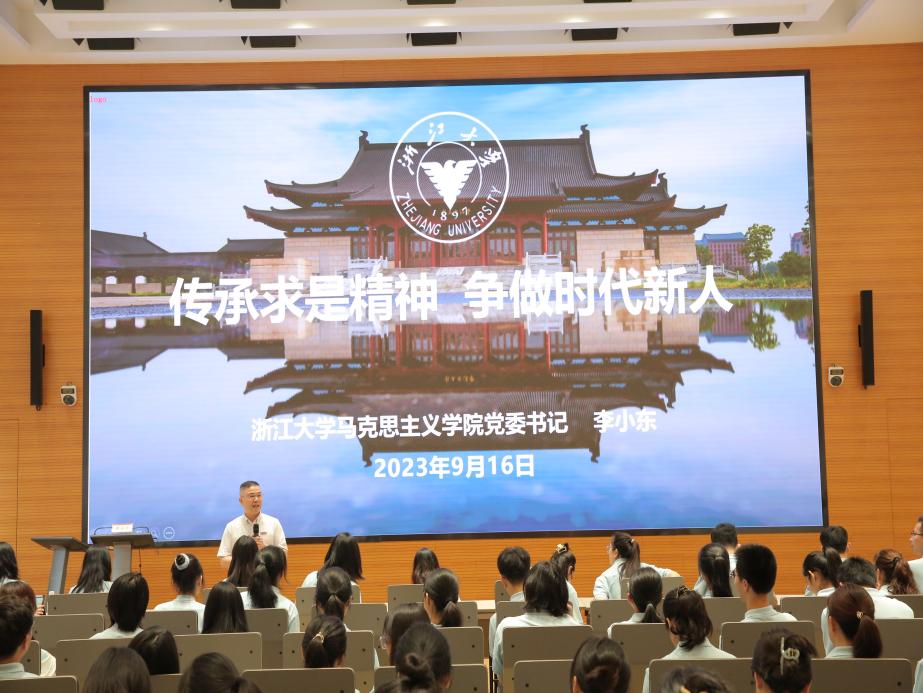 9月16日上午,浙江大学马克思主义学院2023级新生始业教育系列专题报告之“传承求是精神,争做时代新人”在紫金港校区研究生教育综合楼101室顺利举行。本次报告由学院党委书记兼副院长李小东主讲。