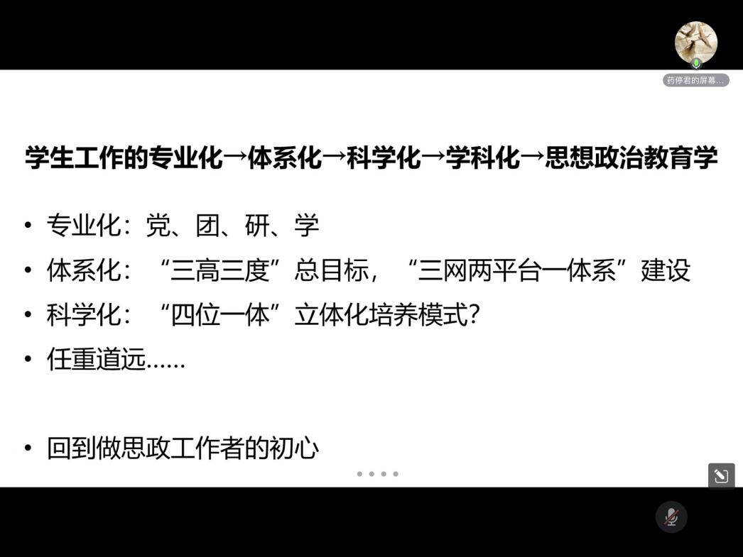 来自马克思主义基本原理专业的硕士生郭子昂以自己两个学期的科研、生活为主线,按时间顺序为同学们分享了自己的心路历程。他对科研的热情与钻研态度、时间管理的方法,都给参加分享会的同学们带来了极大的启发。