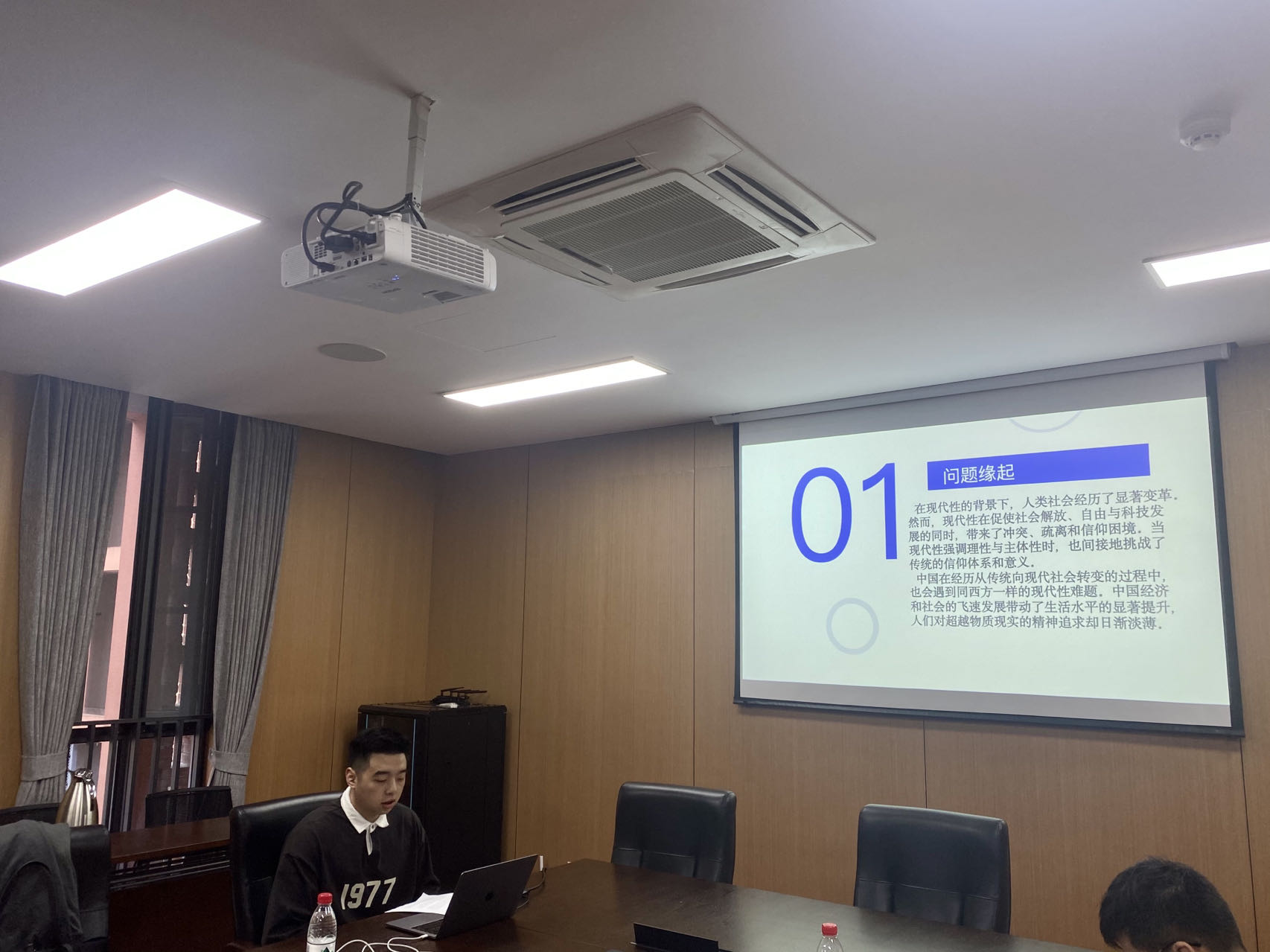 杭州电子科技大学马克思主义学院硕士生林子祥分享的论文题目是《现代性视域下大学生信仰困境及其超越》,他围绕问题缘起、何为现代性及现代性根本问题、现代性对大学生造成的困扰、超越困境之道等四个方面对论文展开介绍。