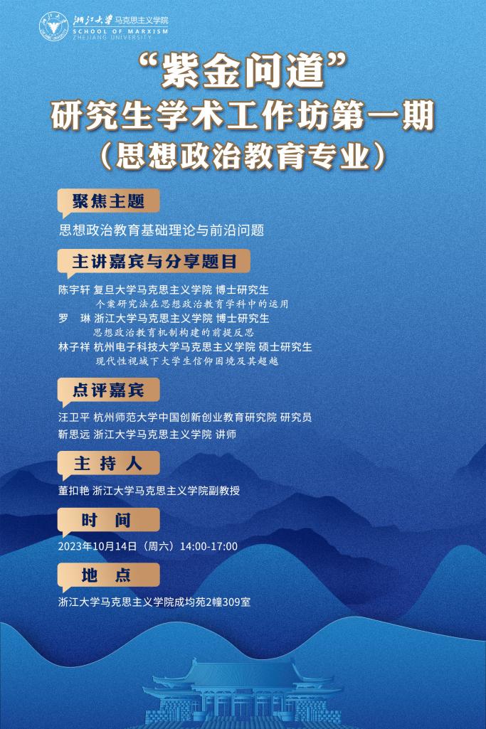 “紫金问道”研究生学术工坊(思想政治教育专业)第一期活动顺利举行,是马克思主义学院思想政治教育专业研究生开展跨校、跨年级学术交流互动的积极尝试。据悉,该活动将定期举办,欢迎省内外高校同学踊跃报名(活动和报名方式详见后续学院官网通知)。