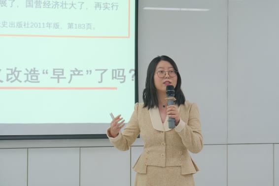 接下来,七位参赛教师依次进行课堂教学展示。毛概教研中心赵永帅老师以“社会主义根本任务和发展战略理论”为主题,讲解在理论反思、实践探索与时代变化中形成的社会主义根本任务的理论,并透彻阐述“三步走”发展战略是什么与怎么办的问题;毛概教研中心陈晓伟老师围绕“中国发展民主为什么不能照搬西方模式”这一问题,回应对走中国特色民主发展道路的三类质疑,鲜明指出中国发展民主不必照搬、不可照搬、无需照搬西方模式;原理教研中心彭双贞老师以“马克思主义过时了吗”为题,引导学生从马克思主义回应时代之问、真理之问与现实之问中理解其与时俱进的理论品格;原理教研中心严松老师围绕“共产主义崇高理想及其最终实现”这一主题,以对“共产主义是人类的自我麻醉”“共产主义理想是一种高估了人性的空想”“共产主义理想太过遥远,实现与否与我无关”三类观点的批判,论证共产主义是历史发展的必然趋势;纲要教研中心丁乙老师围绕“新民主主义革命伟大胜利——为什么说没有共产党就没有新中国”主题,以史实为例,分析了抗日战争胜利后国民党政府走向崩溃的原因以及中国共产党领导中国革命取得胜利的基本经验;纲要教研中心孙冲亚老师从社会历史条件、阶级基础与骨干力量、革命纲领的提出以及革命形势的发展四方面向同学们论证辛亥革命的爆发是历史的必然;纲要教研中心赵文心老师以“过渡时期总路线的历史必然性何在”为题,讲述新民主主义社会的过渡性、过渡时期总路线提出的依据并驳斥了社会主义改造“早产论”。