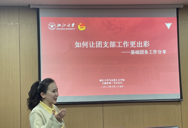 本次会议是浙江大学马克思主义学院团总支换届以来的首次工作会议。在王星雨老师的带领下,团总支的各位成员首先进行自我介绍,互相认识。接着,原2022级硕士生团支部书记古丽米热·艾尼瓦尔同学围绕其过去一年的工作经验展开详细分享。以“如何让团支部工作更出彩”为主题,米热在党团班团工作一体化、日常工作细化以及团员情绪调节等方面给出宝贵建议。经验分享结束后,团支部成员就近期工作遇到的实际问题、团支部运行的相关流程等问题互相交流。