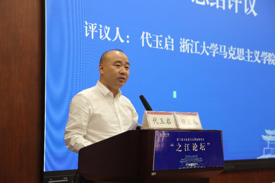 2023年10月28日,由浙江大学马克思主义学院主办,《浙江社会科学》《浙江学刊》《治理研究》编辑部协办的“中国式现代化与人类文明新形态”第三届马克思主义理论研究生“之江论坛”在成均苑2幢100报告厅顺利召开。来自北京大学、中国人民大学、复旦大学等多所高校和科研院所的三十余名同学受邀参与本次论坛。论坛开幕式由浙江大学马克思主义学院副院长代玉启教授主持,《浙江社会科学》编辑戴道昆、《浙江学刊》编辑张东峰、《治理研究》编辑张震以及浙江大学马克思主义学院十余名教师组成的评审团与会并作为评审专家参与评议。