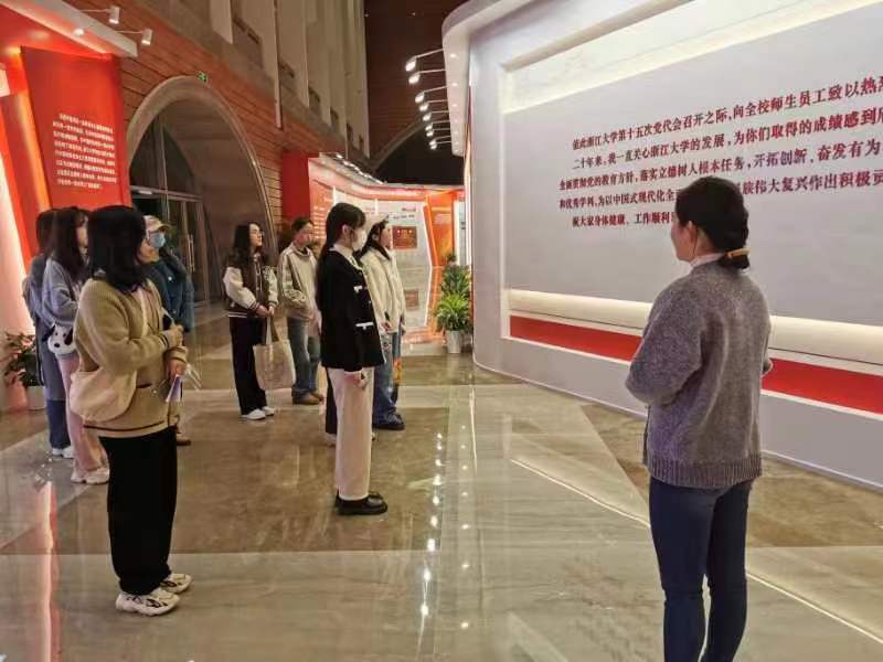 11月18日下午,马克思主义学院2023学年秋冬学期研究生入党积极分子培训班成员在讲解员唐小岚的带领下,共同参观学习了浙江大学二十年办学成果展。