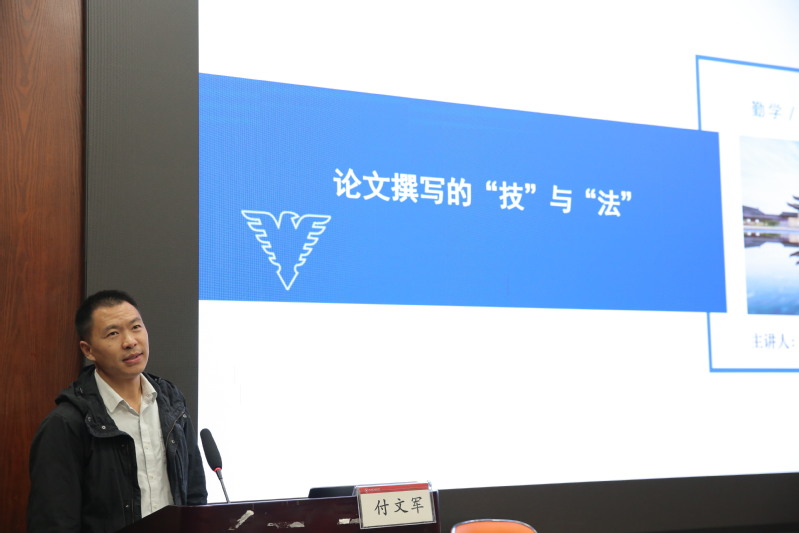 付文军老师以科研路上的“五大关”为引入,付文军老师首先启示同学们要保持信心,永远保持执笔写作的习惯和反复修改的工作。他强调在开展选题之前,要考虑审稿的总体标准和要求,洞悉学术行规。确定选题的过程中,要关注选题的意义、原创性、布局的合理性、文稿的学术性、选题的意识形态性等问题。