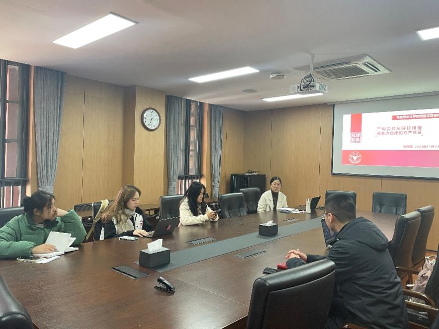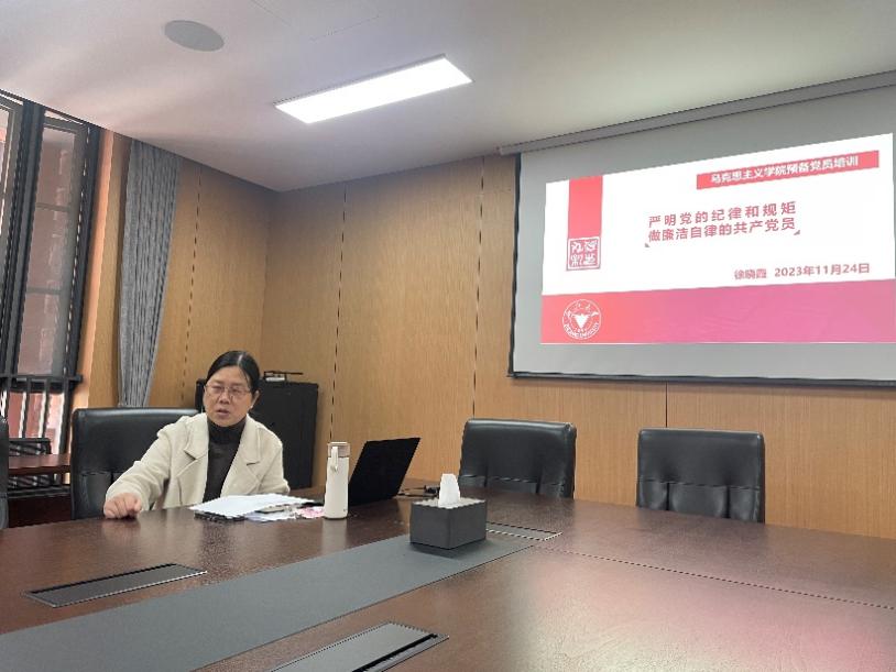 11月24日下午,马克思主义学院在成均苑2幢309室开展了主题为“严明党的纪律和规矩,做廉洁自律的共产党员”的预备党员培训。学院党委副书记、纪委书记徐晓霞老师以及学院全体预备党员出席本次会议。