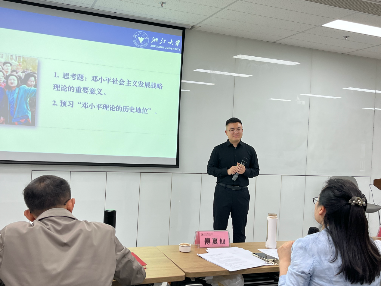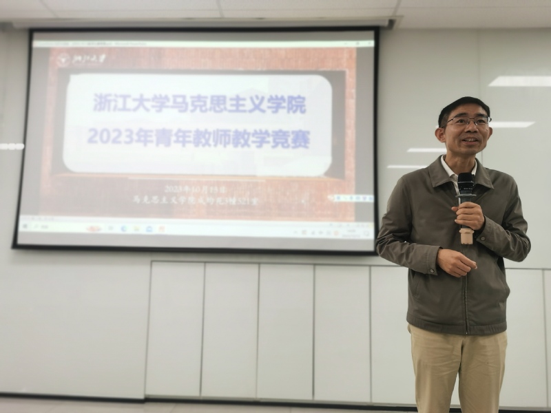 10月13日下午,浙江大学马克思主义学院2023年青年教师教学竞赛于成均苑3幢521会议室顺利举行。马克思主义中国化研究所陈晓伟、赵永帅两位老师参加比赛。“毛泽东思想和中国特色社会主义理论体系概论”课程负责人傅夏仙老师参加评委工作。按照课程组要求,高永、王立伟、李凌羽等多位老师在场观摩学习。