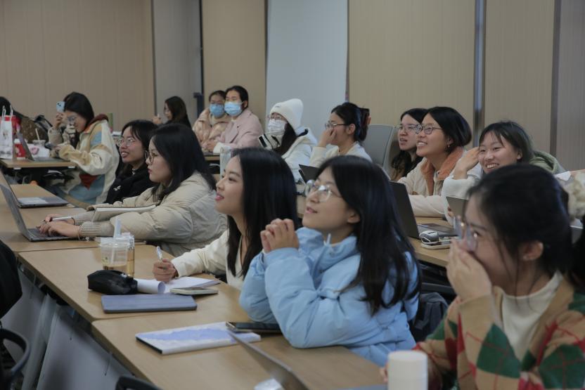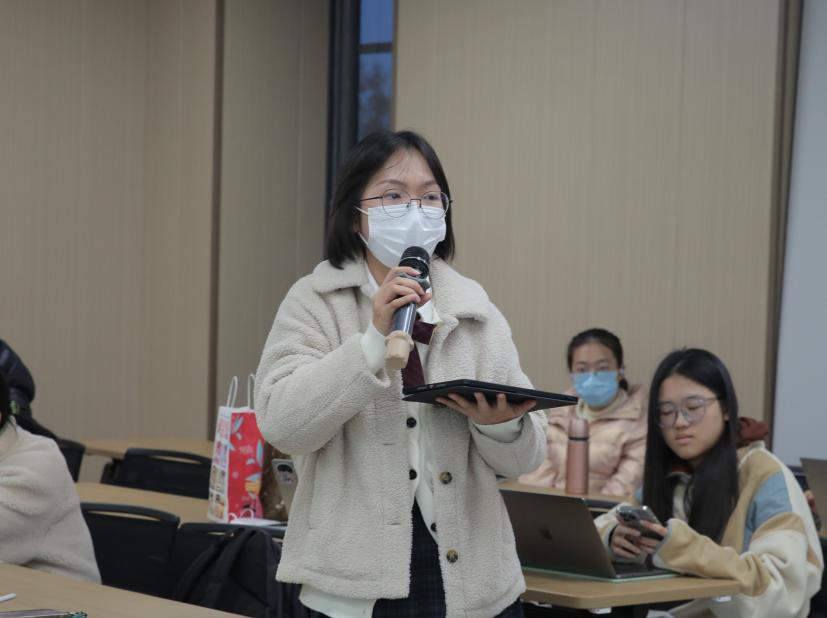 在提问交流环节,同学们踊跃发言,提出“如何阅读国外文献,提高英文学术理解能力”“阅读和做读书笔记时关注哪些内容及如何使用所做的读书笔记”等问题,林进龙同学逐一进行解答。