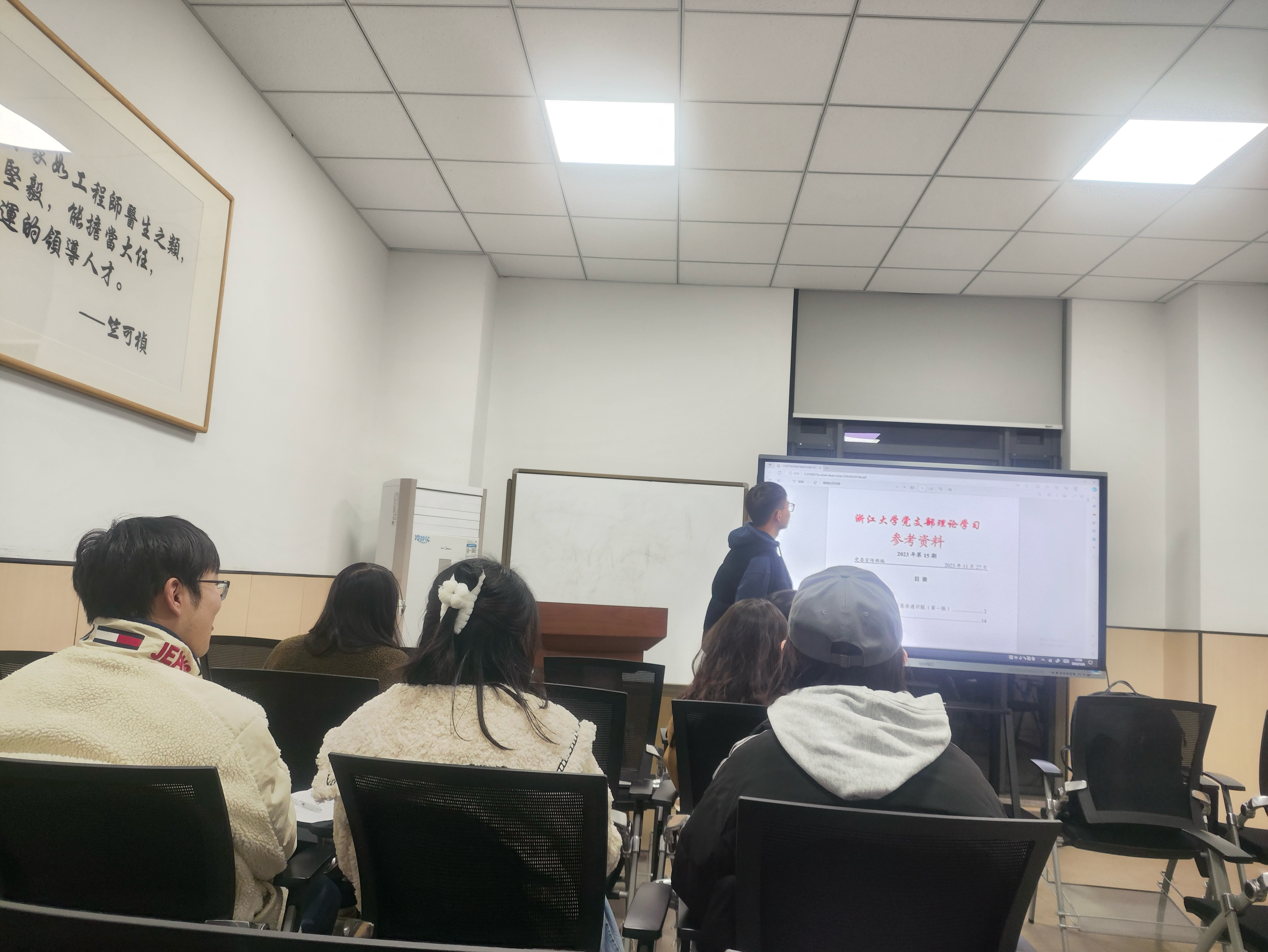 首先,刘宏伟同志领学了浙江大学党支部理论学习参考资料,在介绍“宪法宣传周”活动的总体要求的基础上,强调在强国建设、民族复兴的新征程上,强化宪法意识,弘扬宪法精神,推动宪法实施,更好发挥宪法在治国理政中的重要作用,推进全面依法治国,推进法治中国建设,才能为全面建设社会主义现代化国家、全面推进中华民族伟大复兴提供坚实保障。