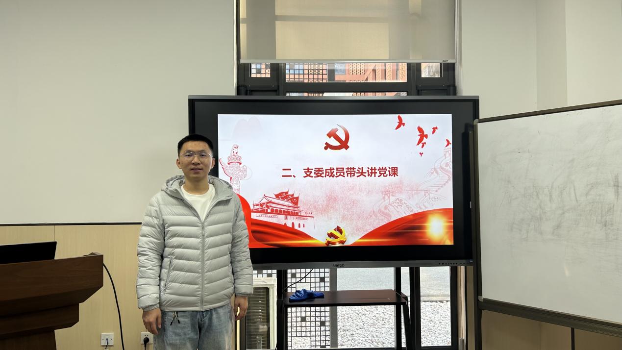 随后,党支部开展支委成员带头讲党课活动。此次主题学习由博士生第二党支部书记田重同志,分享主题为《培根铸魂育新人——中国共产党精神文明建设的百年历程》的内容。田重同志首先以习近平总书记讲话精神作为导入,习近平总书记指出:“人无精神则不立,国无精神则不强。唯有精神上站得住、站得稳,一个民族才能在历史洪流中屹立不倒、挺立潮头。”接下来,他从“革命理想高于天、六亿神州尽舜尧、两个文明一起抓、固本培元强根基”四个方面分析了党的宣传工作的重要性。在实现第二个百年奋斗目标新征程上,全党必须坚定理想信念,永葆革命精神,坚持不懈抓好精神文明建设。