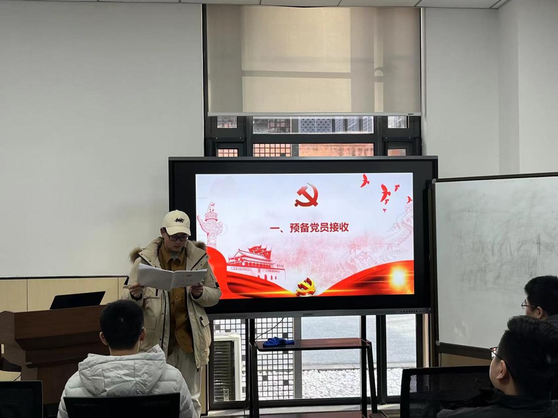 2023年12月21日下午,马克思主义学院博士生第二党支部为发展新党员,凝聚新力量,在成均苑2幢104教室召开党员大会,接收中共预备党员和进行主题教育学习。会议由博士生第二党支部副书记高强同志主持。