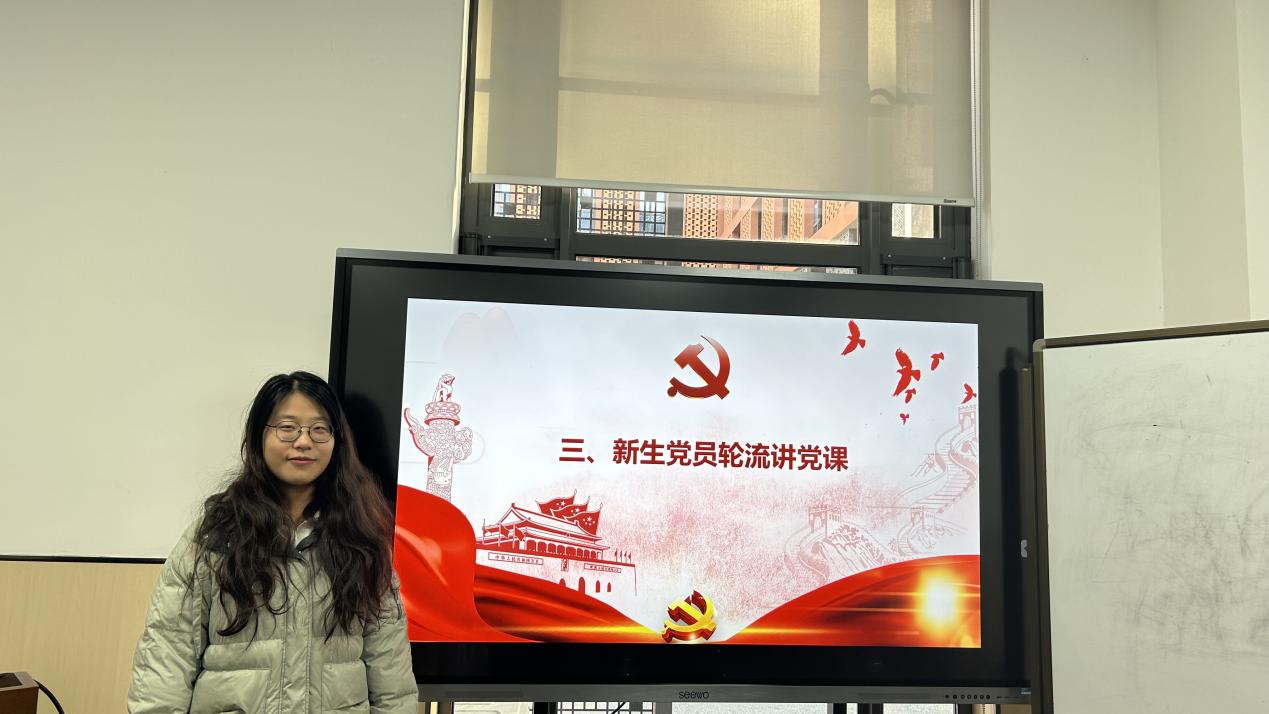 紧接着,新生党员轮流讲党课。此次,由新生党员崔晨茜同志作主题为《坚持高质量发展是“新时代的硬道理”》的学习内容分享。首先,崔晨茜同志带领大家学习了习近平总书记在中央经济工作会议上的重要讲话,“今年主要预期目标有望圆满实现,明年有利条件强于不利因素”。其次,她从“坚持稳中求进、以进促稳、先立后破”等方面介绍了实现明年经济社会发展主要预期目标在工作指导上需要把握好的基本要求。紧接着,她介绍了“‘三驾马车’协同发力,更大力度吸引和利用外资”促进经济回升向好的工作方针,加快培育形成新质生产力。最后,她带领大家学习了防范化解风险的会议精神。