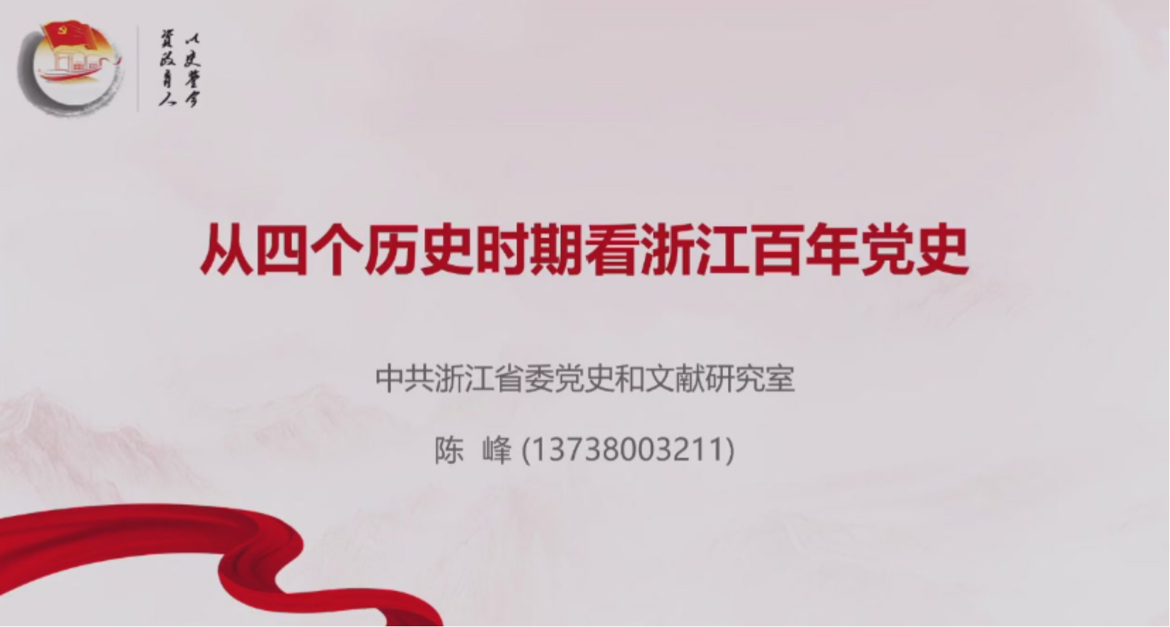 陈峰老师从新民主主义革命时期、社会主义革命和建设时期、改革开放和社会主义现代化建设新时期和中国特色社会主义新时代四个历史时期入手,讲述浙江省百年党史的辉煌与成就。