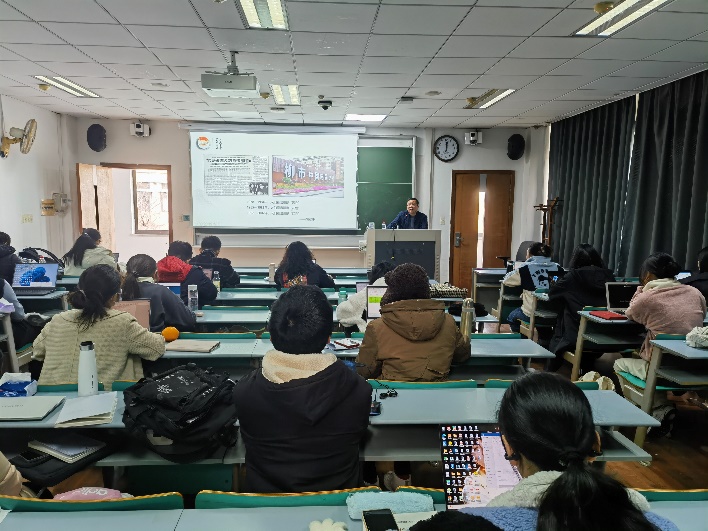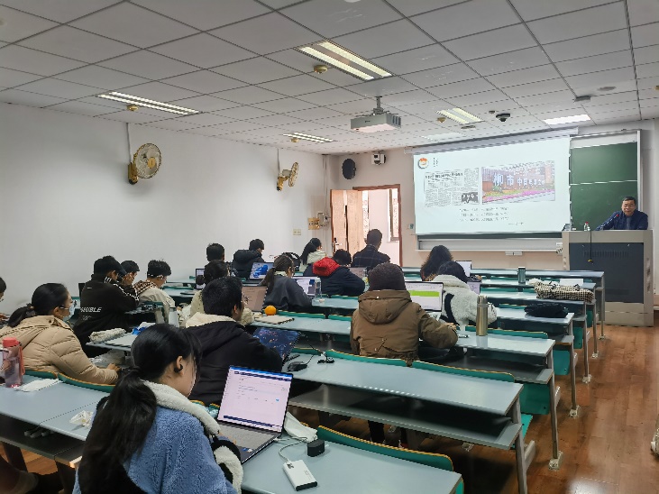 2023年12月29日上午,中共浙江省委党史和文献研究室的陈峰老师在浙江大学西教学楼为中国共产党历史课程班的同学们讲述浙江百年党史的四个历史时期。