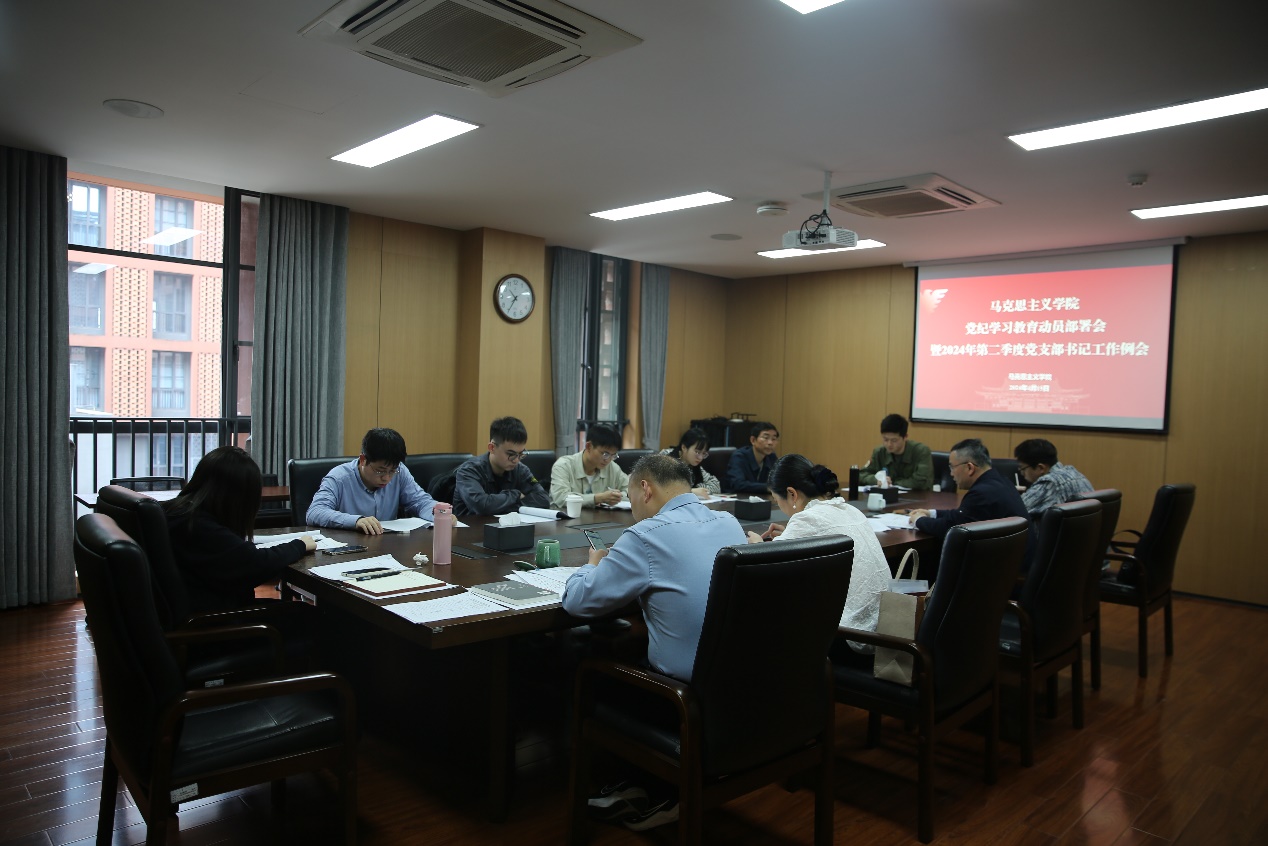 4月15日上午,马克思主义学院党纪学习教育动员部署会暨2024年第二季度党支部书记工作例会在成均苑2幢309会议室召开。学院党委书记李小东、副书记徐晓霞,党委委员、师生党支部书记、研究所所长等参加会议。
