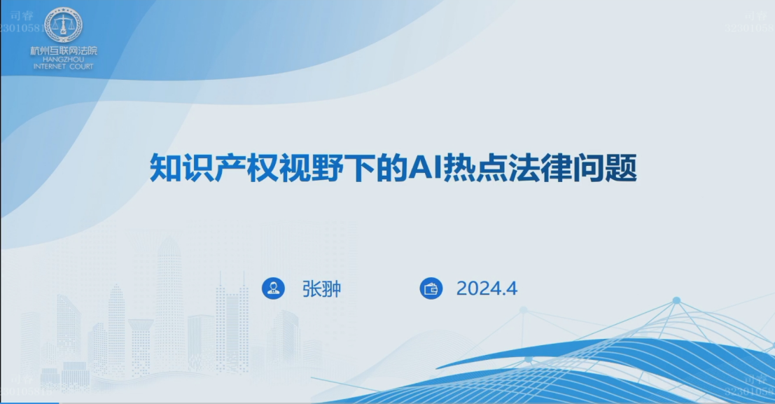 主讲人张翀近年来主要从事知识产权审判工作,承办了首例虚拟数字人案、首例5G云游戏案等一批疑难复杂、社会关注度高的案件。她曾荣立个人三等功两次,被评为2022年度浙江省知识产权保护工作成绩突出个人。张翀法官向同学们介绍了本次宣讲的主要内容即AI与司法实践的关系,并计划从网络知识产权案件特点、人工智能应用风险、虚拟数字人产业发展概述及案件解读、人工智能相关法律热点问题四个方面展开具体的分析。