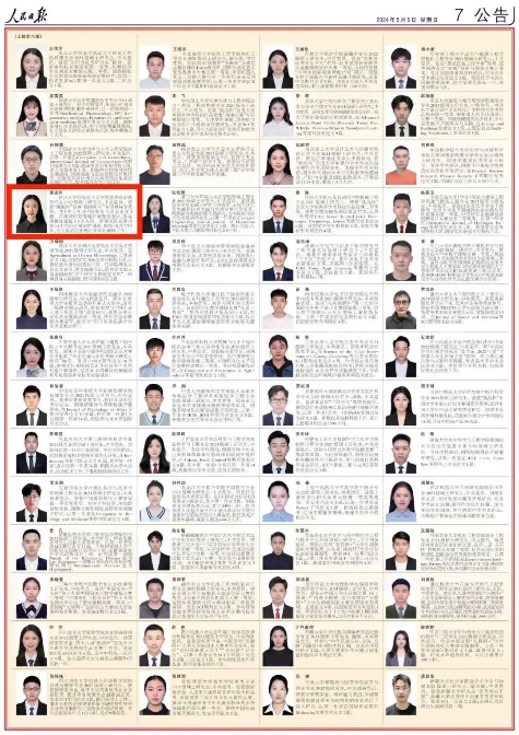 今日,《人民日报》专版刊发“2022—2023学年度本专科生国家奖学金获奖学生代表名录”,其中我院2022级硕士研究生程凌洲入选。