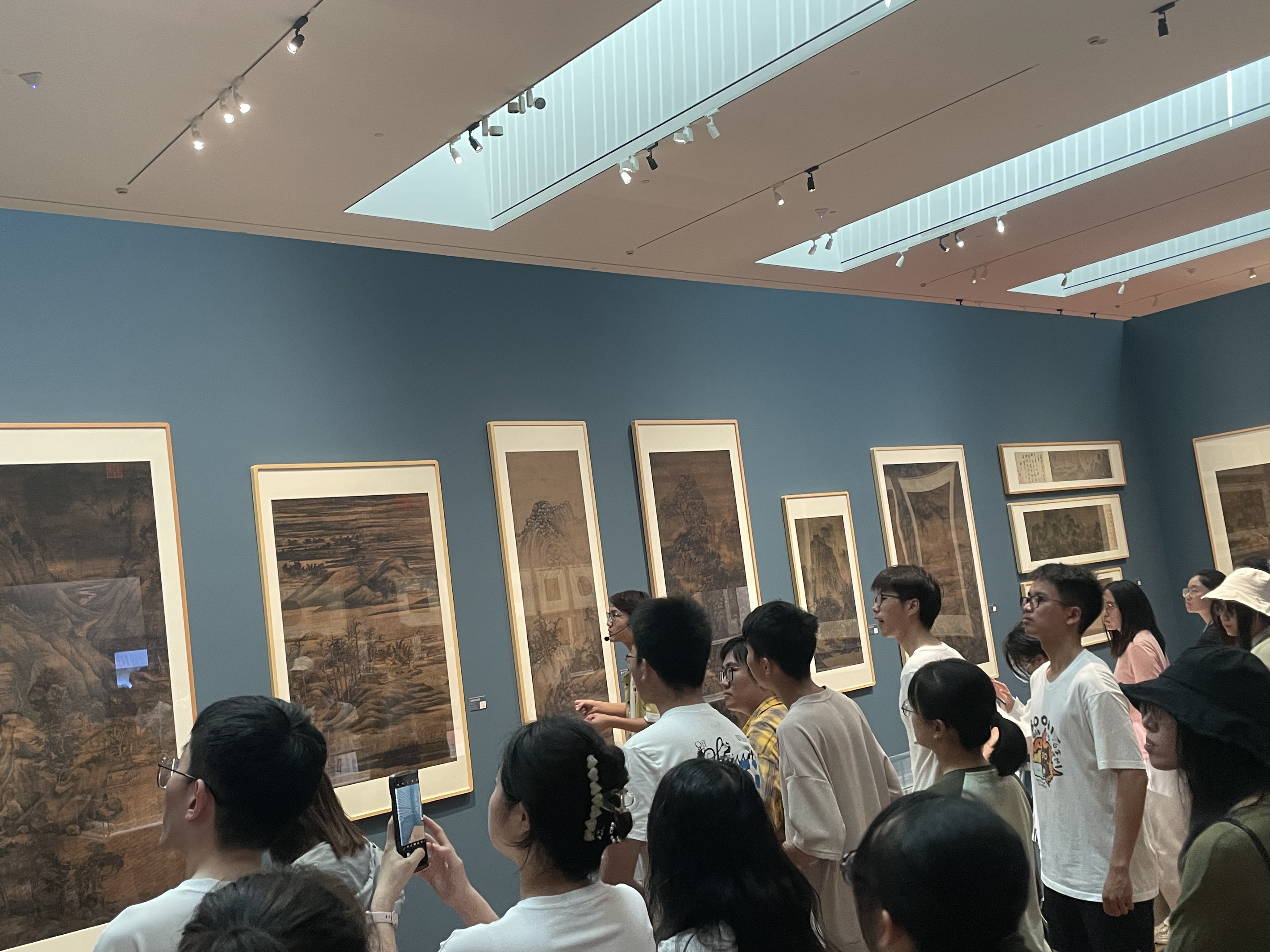 继而,同学们步入了名为“百代标程—悦读宋韵”的第四展区,这里汇集了宋代的绘画艺术精品。宋代画作以自然与人文的和谐结合著称,同学们在此深入探索了宋代艺术家们的创作精神和技艺,每一幅画作都是对生活的独特诠释,也是对自然美的赞歌,体现了马克思主义美学观点与中华文化传统的融合。