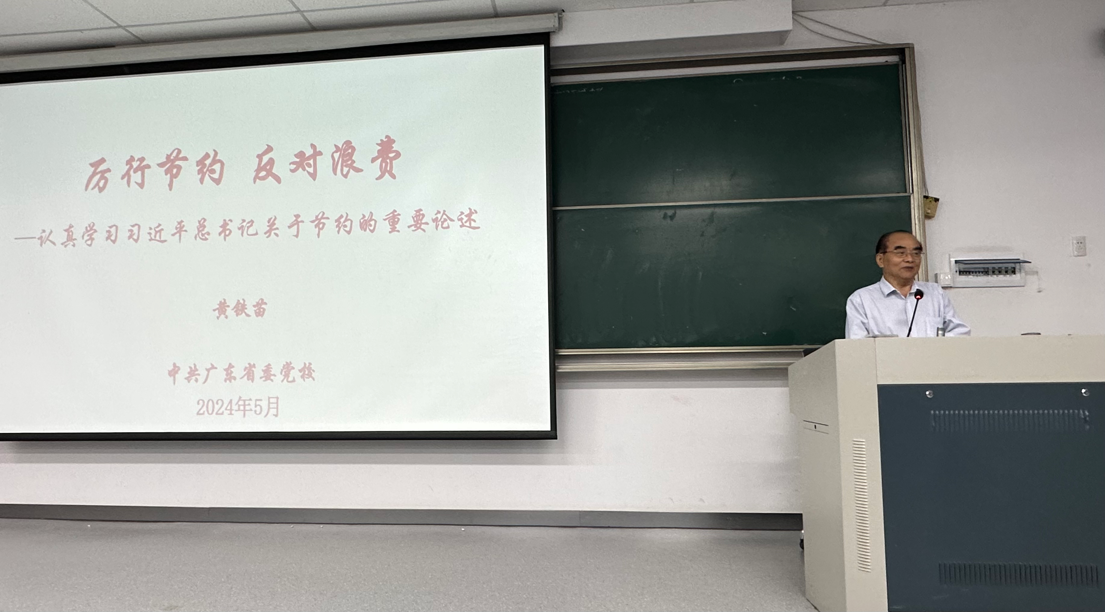 黄教授以厉行节约为主题,依次从“深入学习习近平总书记关于节约的重要论述”、“用习近平节约论述认识和分析我国现实生活中的浪费问题”、“用习近平节约论述解决我国现实生活中的浪费问题”三个部分展开,阐述了自己对于习近平总书记关于节约论述以及当下中国建设节约型社会的思考。