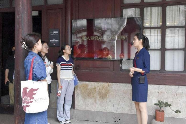 活动伊始,师生在张人亚党章学堂入口处观看“以初心·致青春”宣传片,了解张人亚党章学堂成立的历史背景,学习党史有关青年党员守护党章的故事。2017年10月31日,习近平总书记带领新一届中央政治局常委参观上海中共一大会址时,对冒死保存早期《共产党宣言》者向讲解员提出询问:“他(张人亚)后来怎么样了?”为回答好这一“总书记之问”,张人亚党章学堂在北仑区霞浦街道新浦老屋成立。如今,张人亚党章学堂已成为浙江省首批学习贯彻习近平新时代中国特色社会主义思想现场教学示范点。