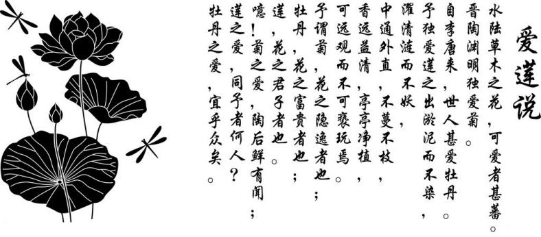 “予独爱莲之出淤泥而不染,濯清涟而不妖,中通外直,不蔓不枝,香远益清,亭亭净植,可远观而不可亵玩焉。”
