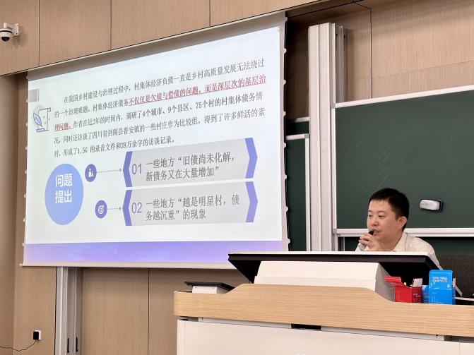讲座伊始,胡天禛博士为同学们讲解了村集体经济收入与支出、负债率和债务率等概念,指出村集体经济债务的本质是基层治理问题。当前村集体经济债务的主要问题表现为:旧债尚未化解,新债又大量增加。
