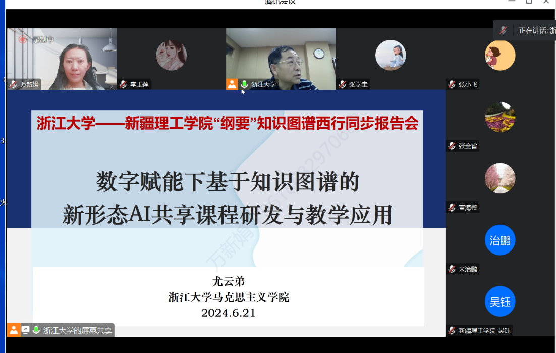 为推动优质教育资源共享,进一步促进思政课教学数字化转型。6月21日,马克思主义学院教师教学发展中心第十八期思政课教师教学发展论坛活动:浙江大学-新疆理工学院“纲要”知识图谱西行同步报告会在成均苑2幢309会议室顺利举行。