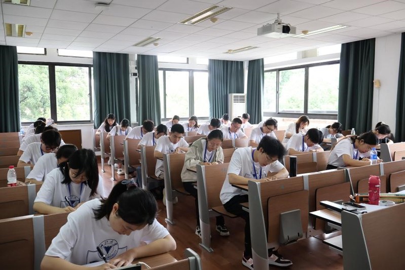 十年磨一剑,六月试锋芒。夏令营第二日设置了专业笔试、外语笔试和外语面试以全面、客观且准确地评估营员们的知识储备。在志愿者的引导下,同学们有条不紊地完成了各项测试程序。