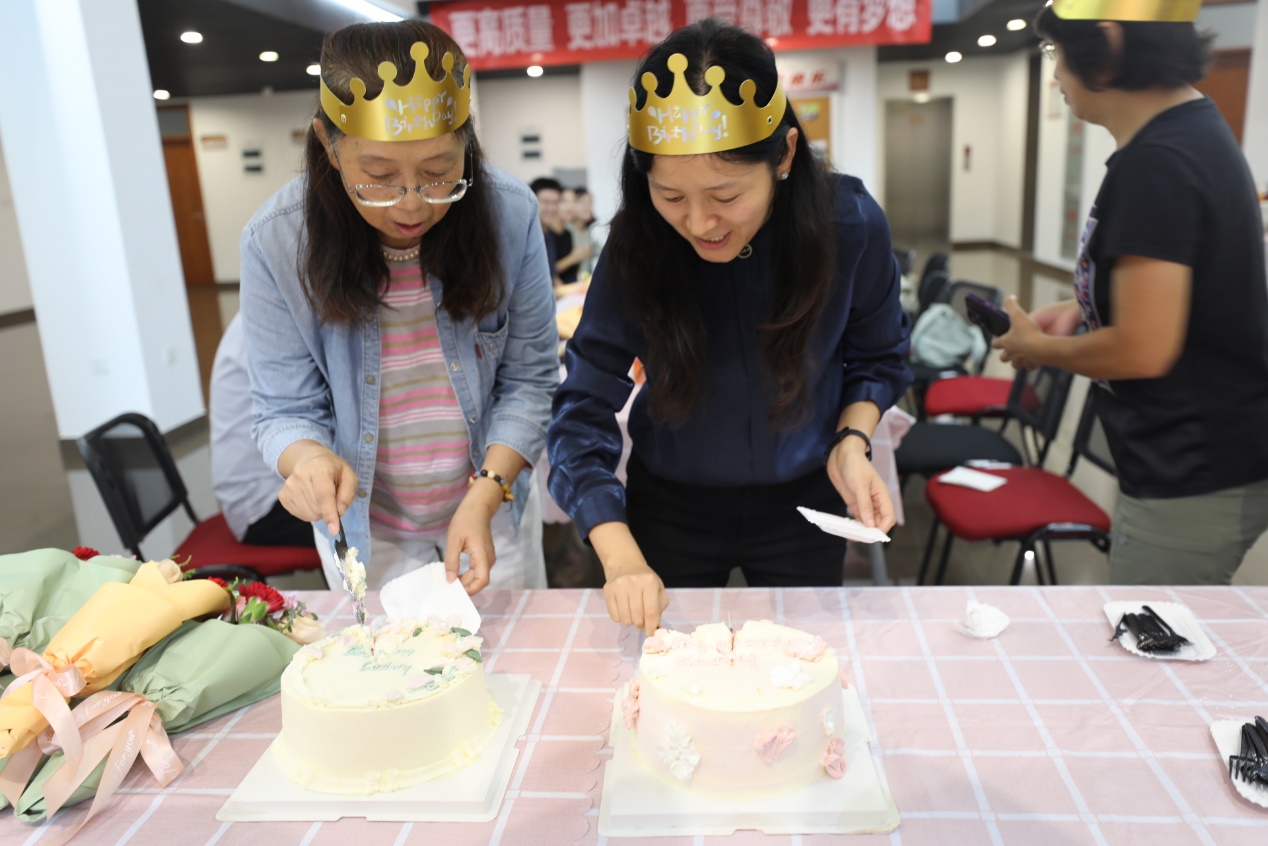 到场的老师们一起吃蛋糕,在现场亲切交流互动,欢声笑语不断。集体生日会为教职工提供了一个交流感情的平台,对增强学院的凝聚力、亲和力、向心力具有积极意义,也让教职工们的集体生日更有仪式感、幸福感和归属感。以后学院将不断创新形式,努力发挥工会交流感情、增进友情的桥梁纽带作用。