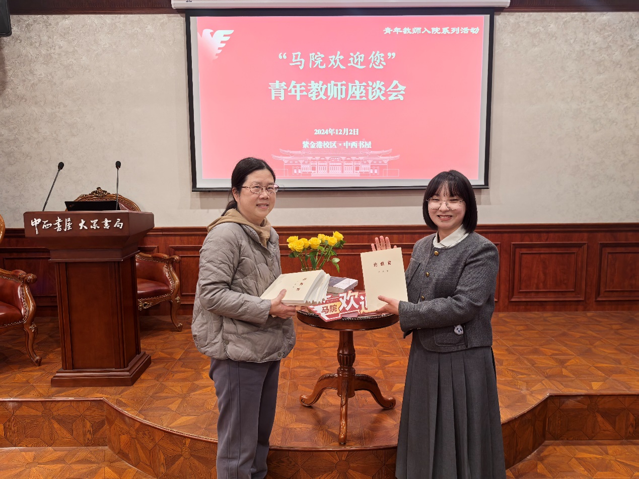 在中西书屋温馨而充满书卷氛围的报告厅里,大家畅所欲言,气氛热烈。每一位新教师分享了入职浙江大学和入院以来的工作生活情况和感悟,纷纷对学院和工会创设的交流平台和专业保障表示感谢。新老教师结合自己如何完成身份转变、如何提高教学水平、如何应对课堂突发情况、如何搭建师生沟通交流平台等进行了热烈讨论和分享交流。会上,工会还向与会教师们赠送了两本精心挑选的书籍,习近平总书记的《论教育》和浙江大学马克思主义理论研究所成立三十周年纪念文集《传承、发展、创新》。
