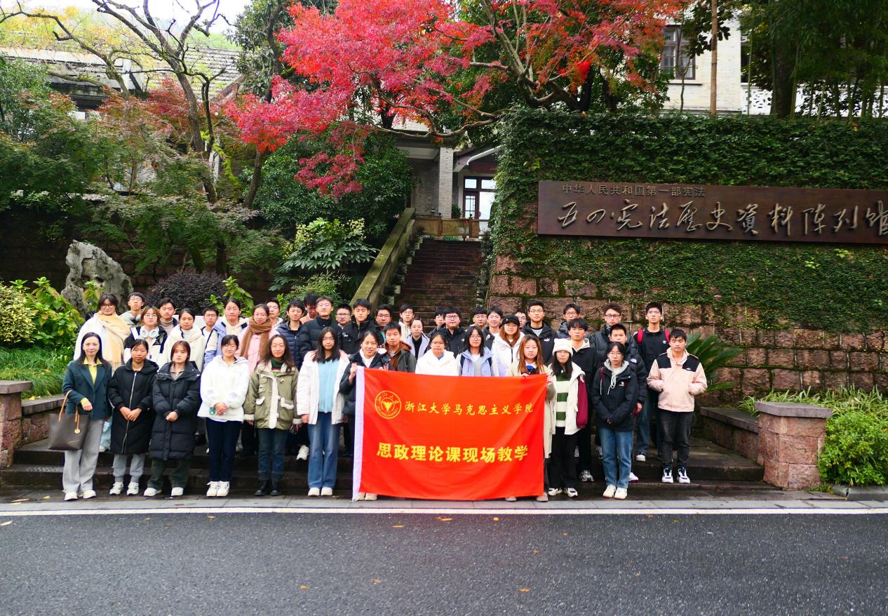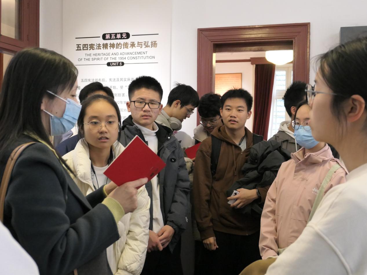 为开展宪法宣传教育,增强社会主义法治意识,推动建设中国特色社会主义法治国家,在国家宪法日来临之际,浙江大学“思想道德与法治”课程周四第7,8节的90余名同学于2024年12月5日下午,在蔡晓卫老师的带领下前往五四宪法历史资料陈列馆,开展了一场法治现场教学活动。通过参观学习,师生加深了对五四宪法的认识、理解与尊重,坚定了弘扬宪法精神的决心。