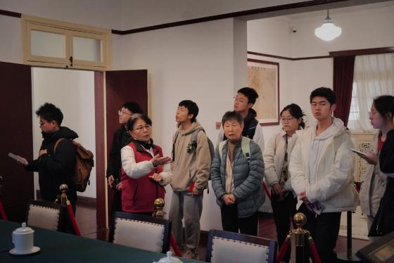 在蔡老师与讲解员的带领下,大家依次参观了序厅、复原陈列和主题陈列三大展区。在序厅,大家驻足端详,聆听讲解,了解五四宪法的制定背景;随后,在复原陈列区,大家仿佛穿越时空,回到了1953年12月至1954年3月,毛泽东主席率领宪法起草小组成员在杭州起草宪法草案初稿的那段时光。这里通过复原当年宪法起草小组的工作场景,让我们仿佛穿越时空,回到了那个激情燃烧的年代。看着那些珍贵的历史照片、手稿和文件,我们深刻感受到了老一辈革命家为制定宪法所付出的艰辛努力。