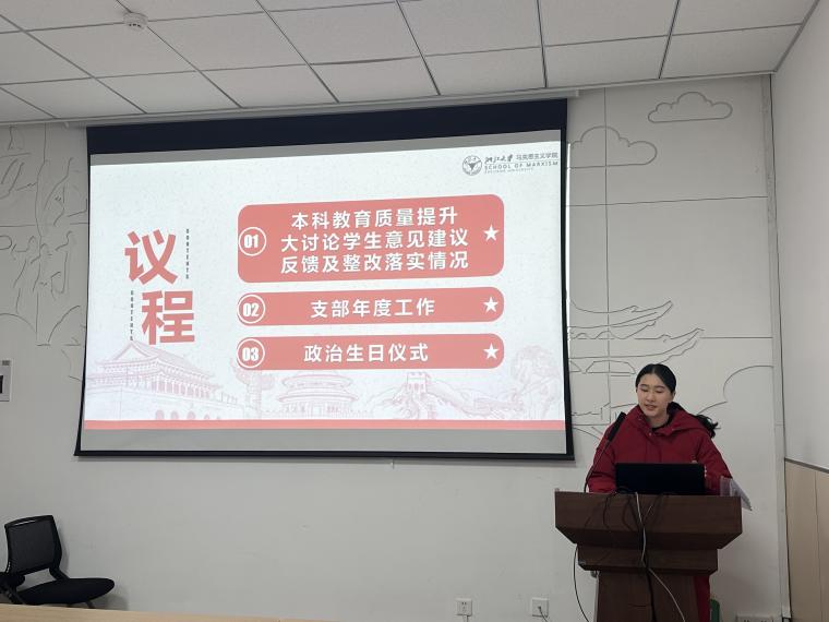 为进一步贯彻落实党的二十届三中全会精神、全国教育大会精神,聚焦增强党组织政治功能和组织功能,12月30日,马克思主义学院博士生第三党支部开展“本科教育质量提升大讨论学生意见建议反馈及整改落实情况暨支部年度工作汇报”暨支部年度工作汇报主题党日活动。此次主题党日活动由支部副书记蔡安禧同志主持,分为三个环节。