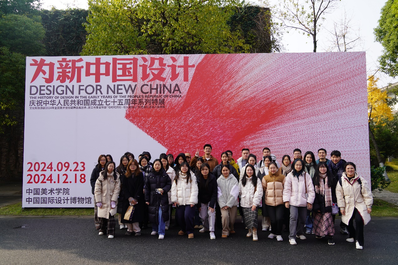 同学们首先前往中国美术学院中国国际设计博物馆,在导览志愿者的讲解下参观“为新中国设计——庆祝中华人民共和国成立75周年系列特展”。此次展览是文化和旅游部2024年全国美术馆馆藏精品展出季活动,也是2024年浙江省委宣传部“与时代同行·与人民同心”文艺巡礼活动项目之一。在欣赏设计作品的过程当中,有这样三点使观展师生感触颇深。