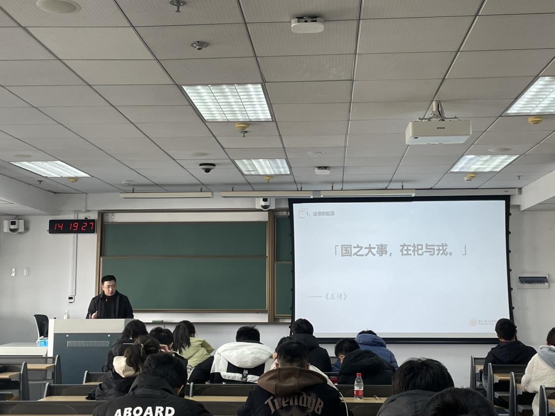 最近我们迎来了我国首个宪法日设立10周年的重大时刻,今年的主题是“大力弘扬宪法精神,推动进一步全面深化改革”。为了帮助同学们进一步了解我国法律和宪法知识,更好地弘扬法治文化和宪法精神,12月9日,我们特别邀请了浙江泽大律师事务所专职律师、二级合伙人童彬超校友在《思想道德与法治》的课堂为我们讲授科普法律知识。