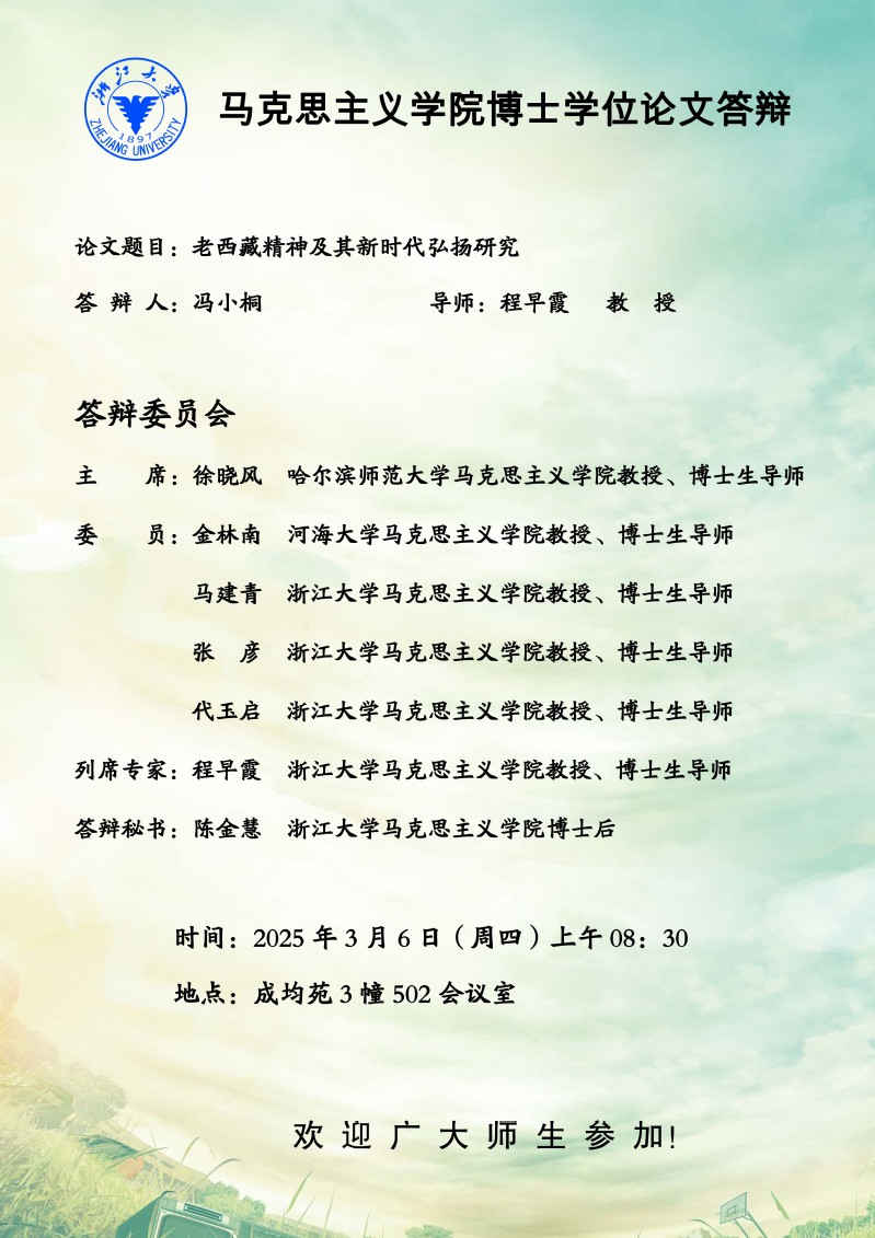 2025年第一季度博士学位论文答辩通知