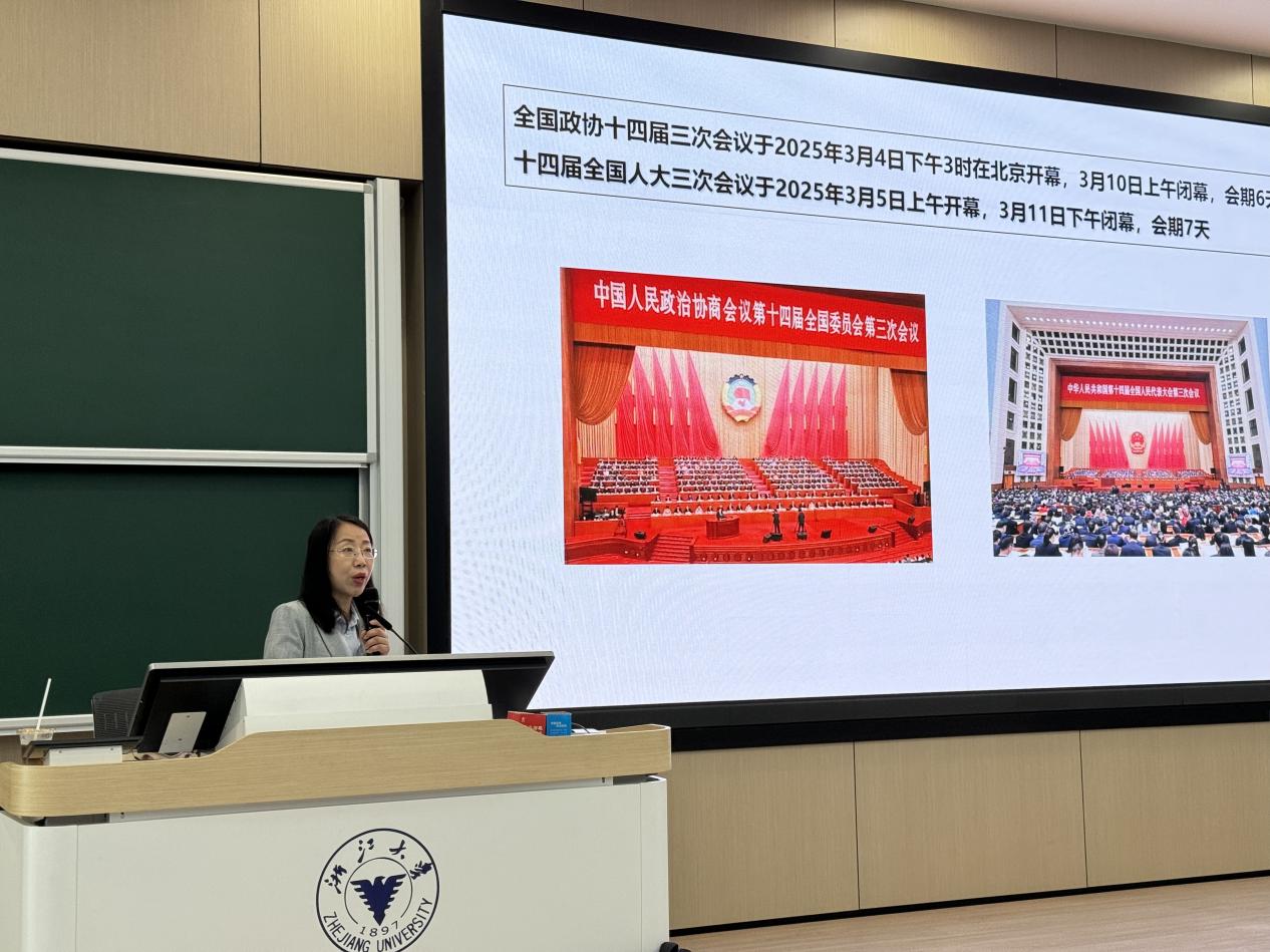 为深入学习贯彻2025年全国两会精神,引导青年学子深刻把握中国式现代化的时代内涵,3月27日,浙江大学“习近平新时代中国特色社会主义思想概论”课程组邀请南京医科大学马克思主义学院院长巩茹敏教授,走进翟绪权老师“习近平新时代中国特色社会主义思想概论”班级为同学们带来《谱写中国式现代化建设的新篇章》的主题讲座,百余名师生现场聆听。