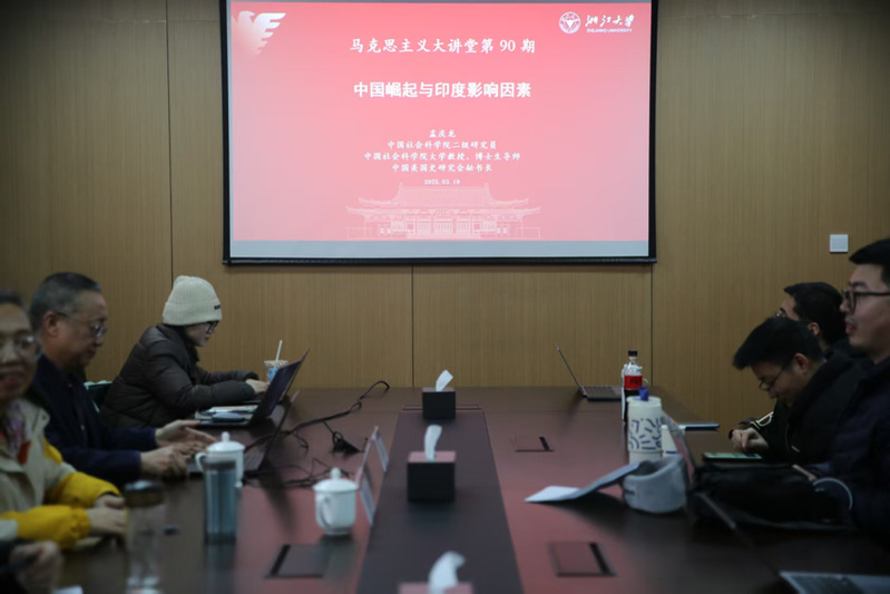 3月19日,浙江大学马克思主义大讲堂第90期在成均苑2幢309会议室顺利举行。中国社会科学院研究员孟庆龙老师受邀作“中国崛起与印度影响因素”主题讲座。讲座由浙江大学马克思主义学院程早霞教授主持。