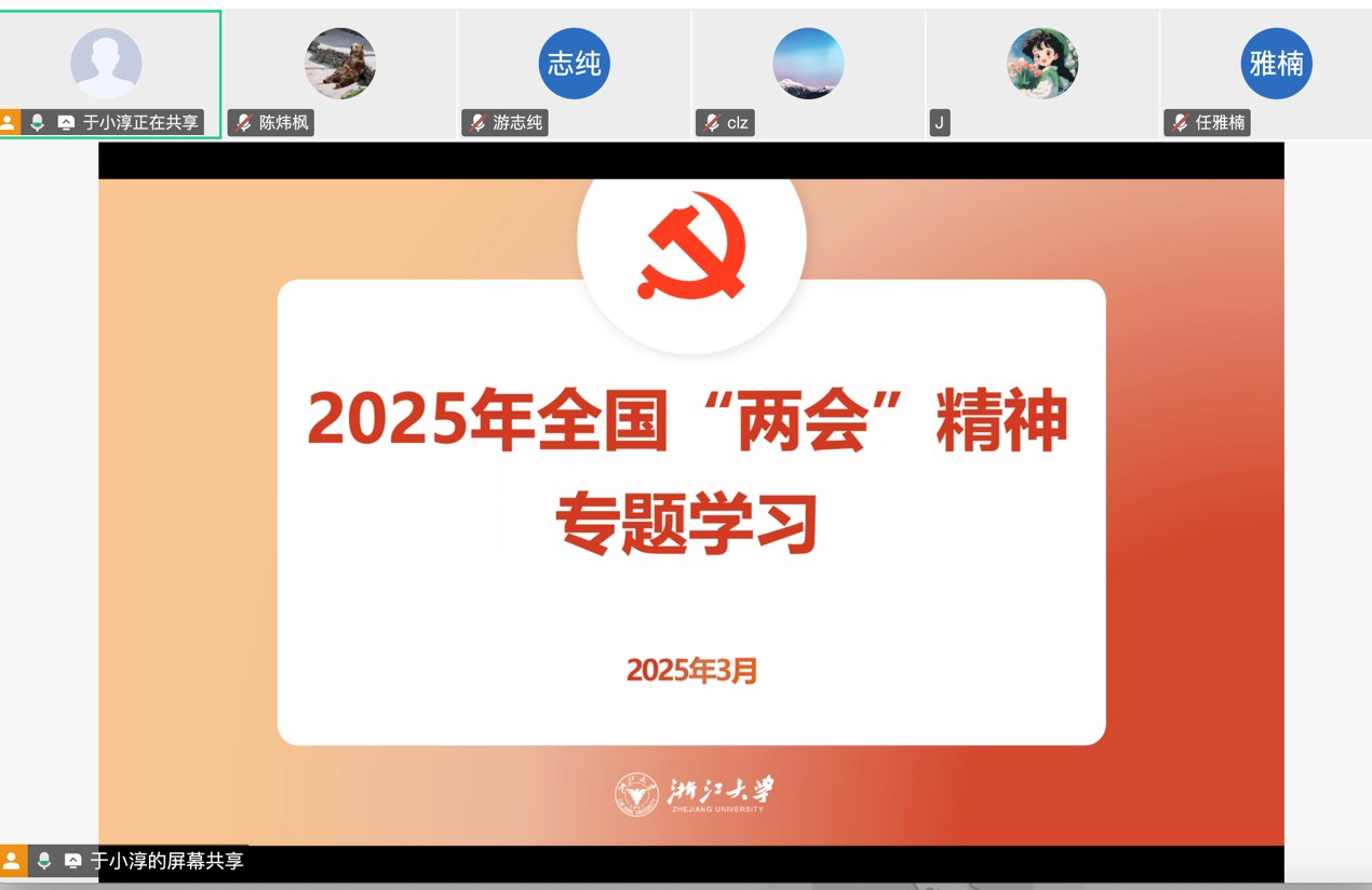 为深入学习贯彻习近平新时代中国特色社会主义思想,进一步增强党员干部的政治自觉和行动自觉,浙江大学马克思主义学院博士生第一党支部于3月31日召开主题党日活动,围绕2025年全国“两会”精神专题学习和“深入贯彻中央八项规定精神学习教育”两大主题展开,以学铸魂、以学促干,为推进高质量发展注入红色动能。