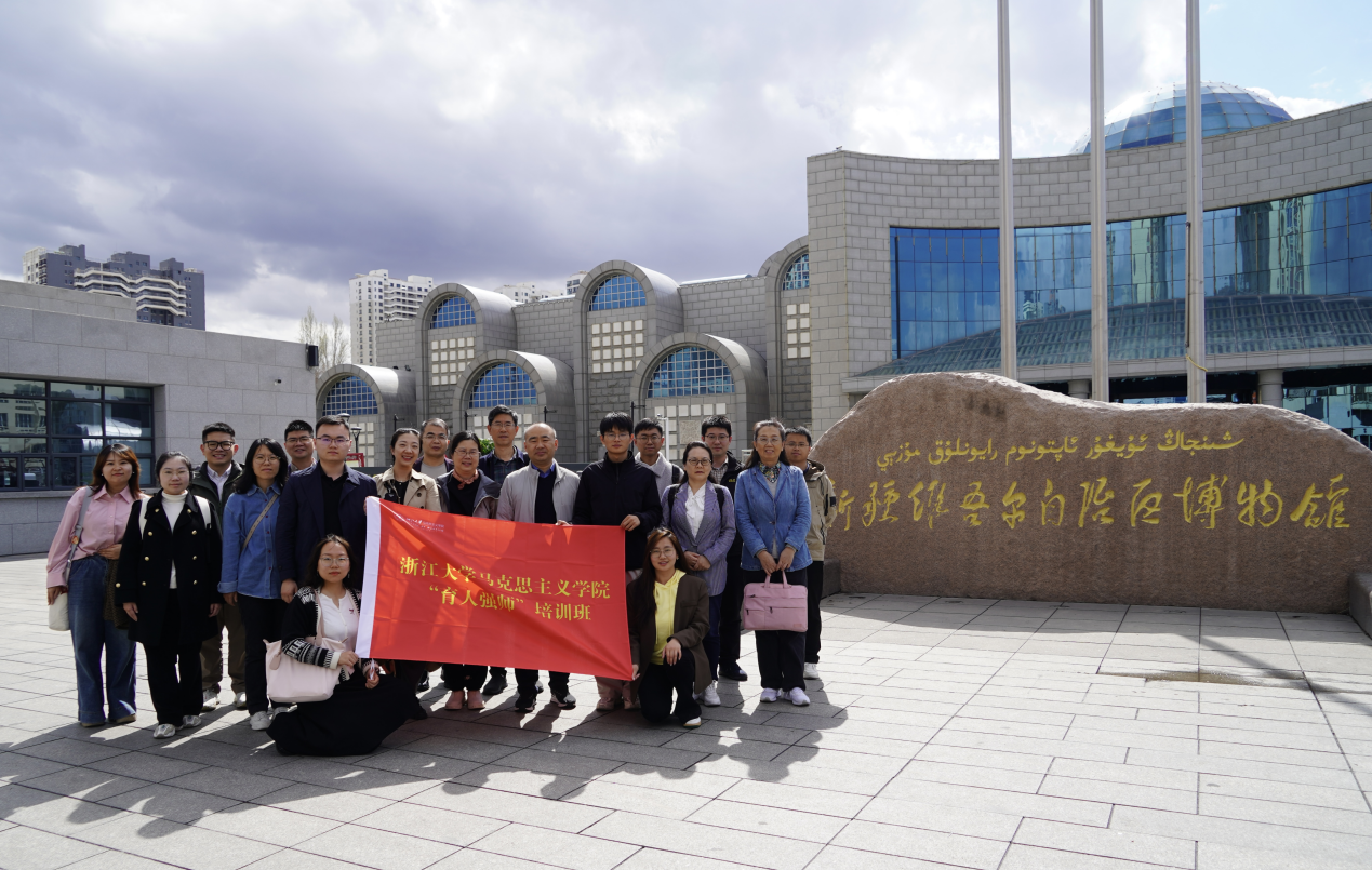 4月11日,培训班成员参与了由浙江大学马克思主义学院与江南大学马克思主义学院、大连海事大学马克思主义学院、石河子大学马克思主义学院、浙大城市学院马克思主义学院联合举办的“沿着习近平总书记足迹 在行走的思政课中感悟思想伟力”主题党日活动。培训班成员首先参观新疆兵团军垦博物馆,感悟几代兵团人建设新疆、卫国戍边的无私精神。
