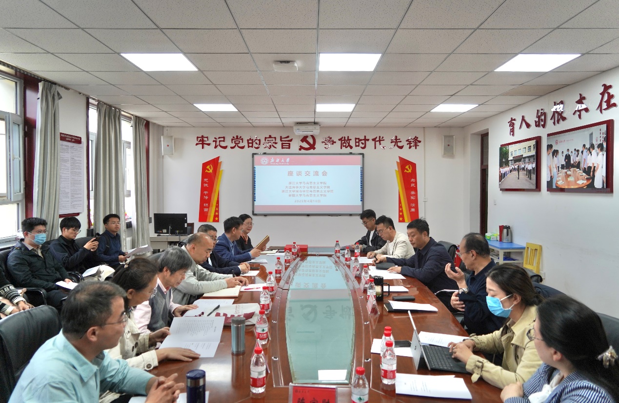 “育人强师”培训班一行先后参访了新疆农业大学马克思主义学院、新疆大学马克思主义学院、新疆师范大学马克思主义学院与石河子大学马克思主义学院,并开展座谈交流。座谈会上,培训班成员与高校马院、老师和学生代表围绕学科建设、人才培养、基层党支部建设、学生组织建设等进行了深入的学习和交流。